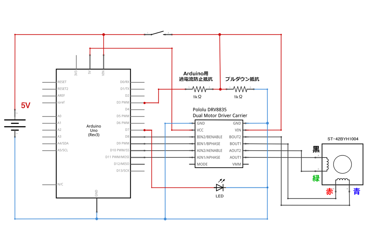 Arduinoで5Vステッピングモーターを動かす (ST-42BYH1004/DRV8835)