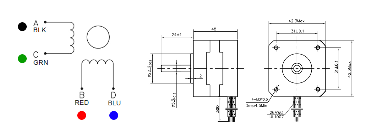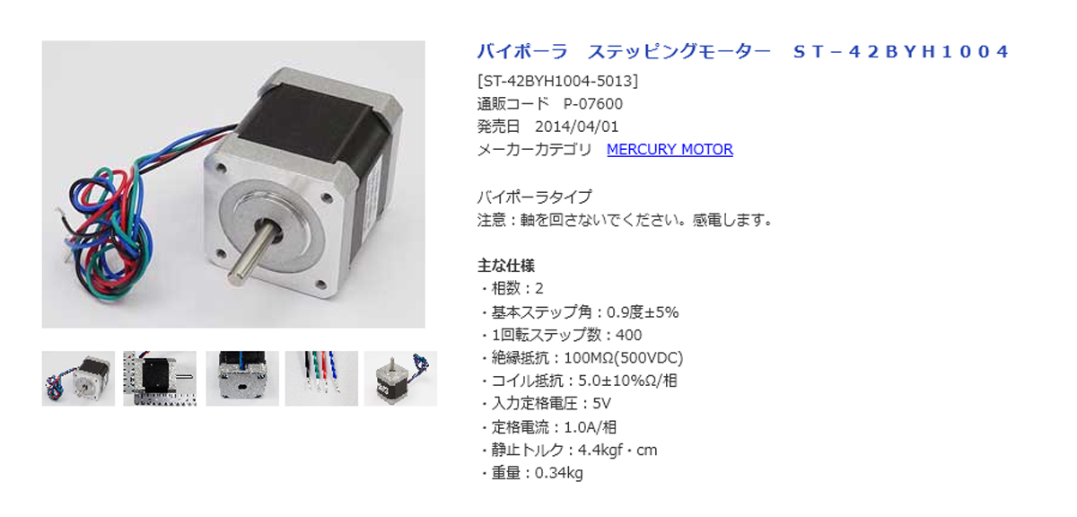 - ステッピングモーター:ST-42BYH1004(バイポーラ型)