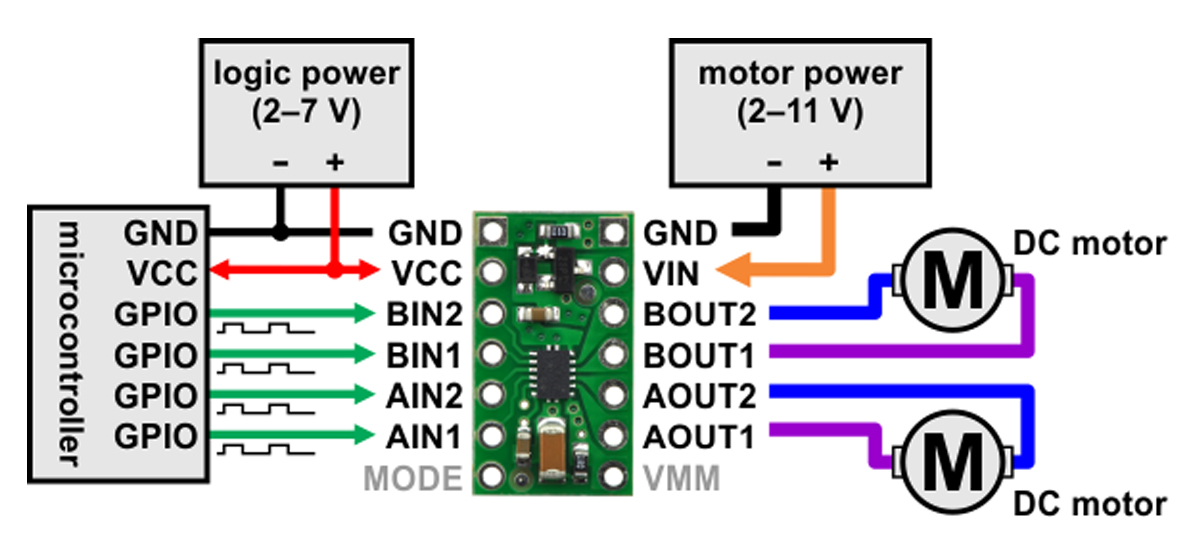 DRV8835モータードライバーには、2つのモードが搭載されています。