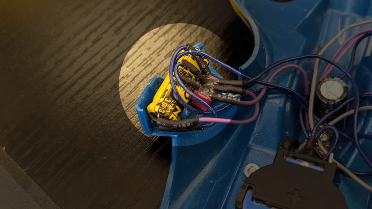 今回の改造は、リモコンのボタンが押されると、電池にスーパーキャパシタを直列に接続する回路に切替。
