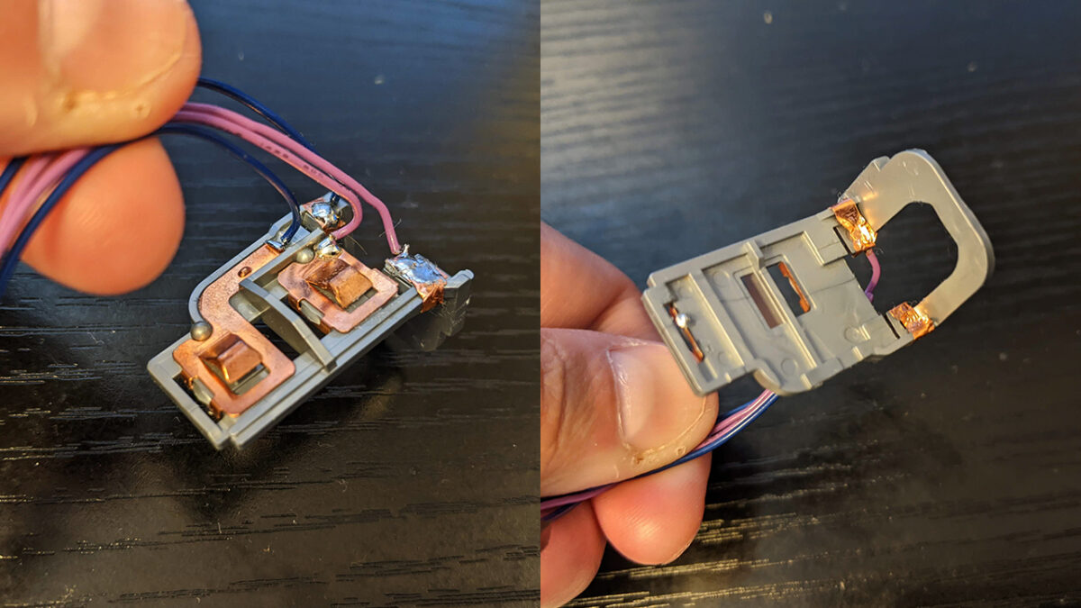 電池とモーターの接続を断ち切るため、ターミナルを切断し、ケーブルで再接続しています。