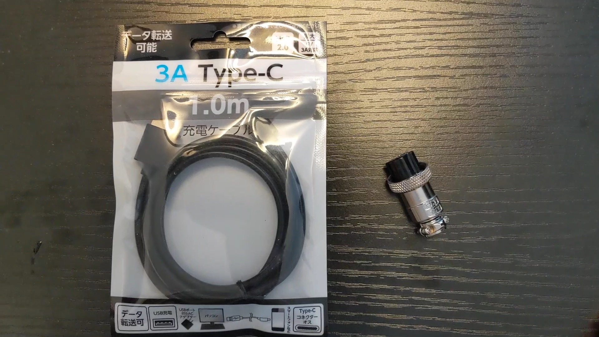 ケーブルはダイソーで適当に買ってきたUSBケーブルです。