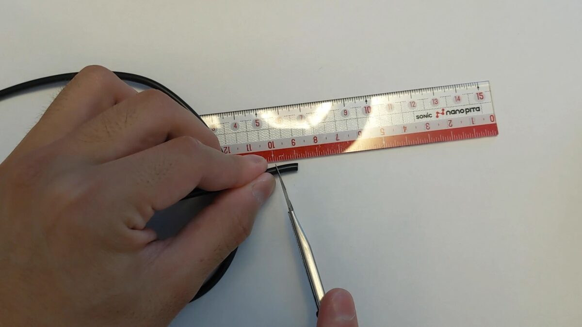 細めの熱収縮チューブを適度な長さにカットしてケーブルに通します。