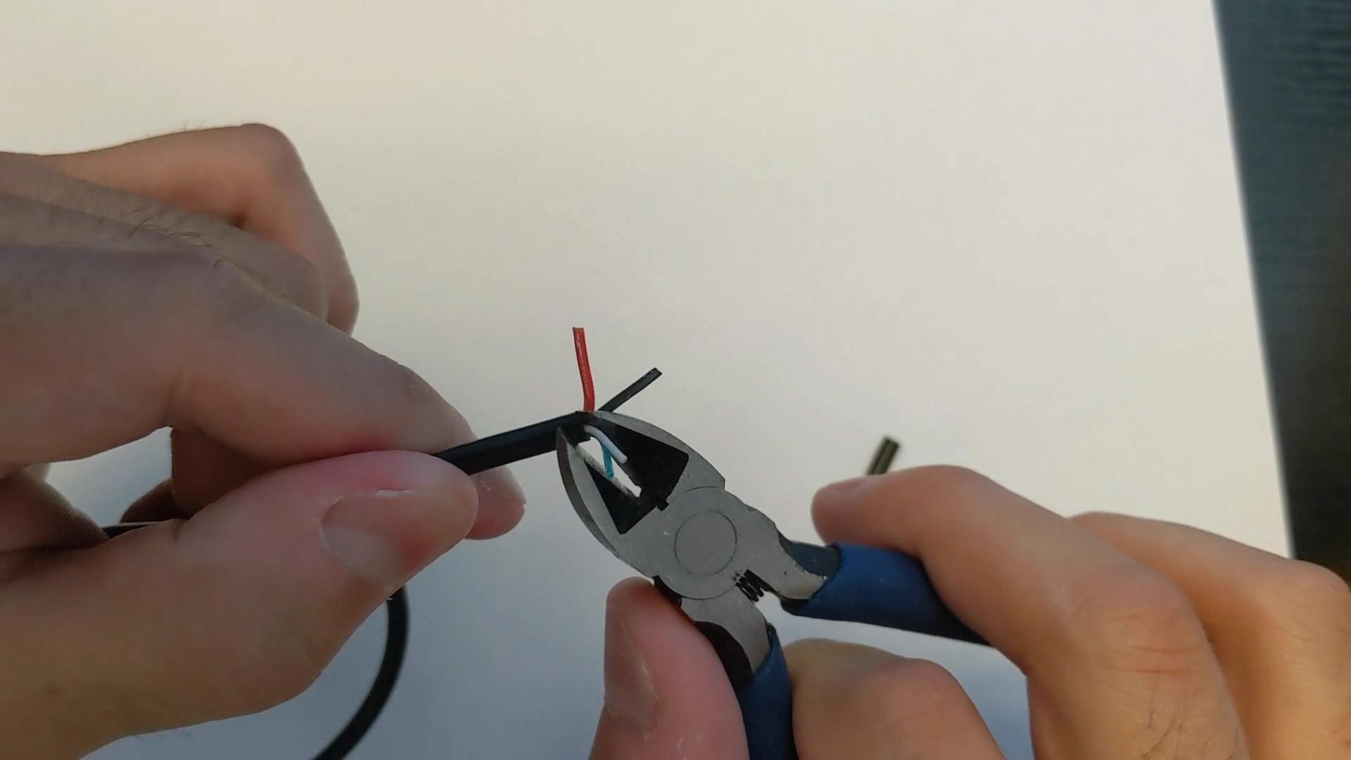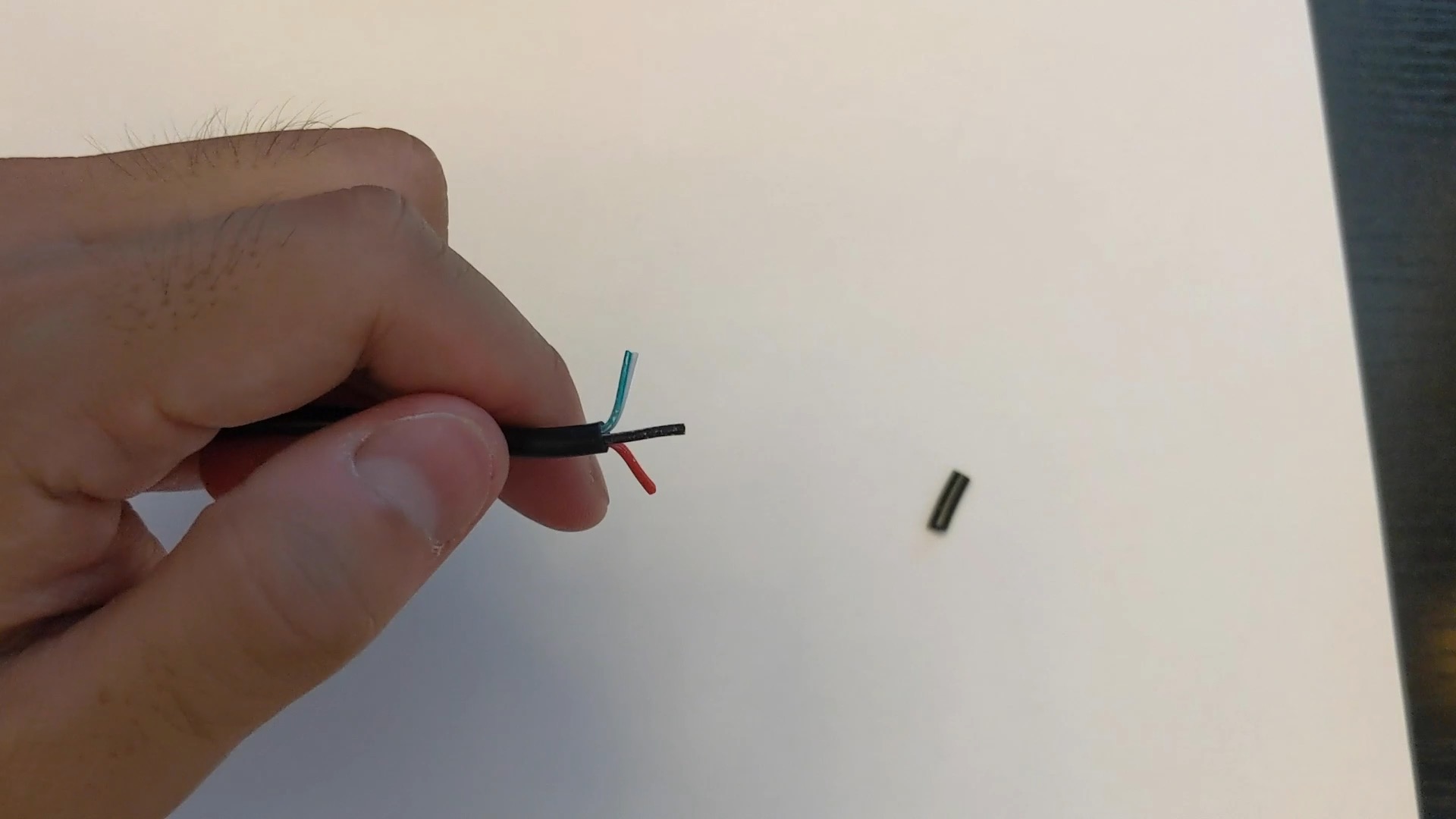 今回のケーブルは、赤・黒・緑・白の色をした線が4本中に入っていましたが、ケーブルの種類によって、色・本数は違います。