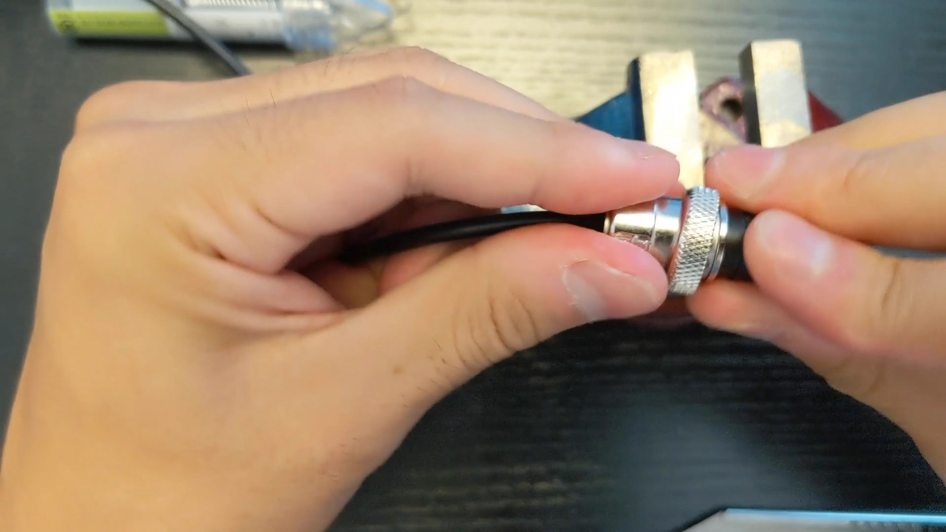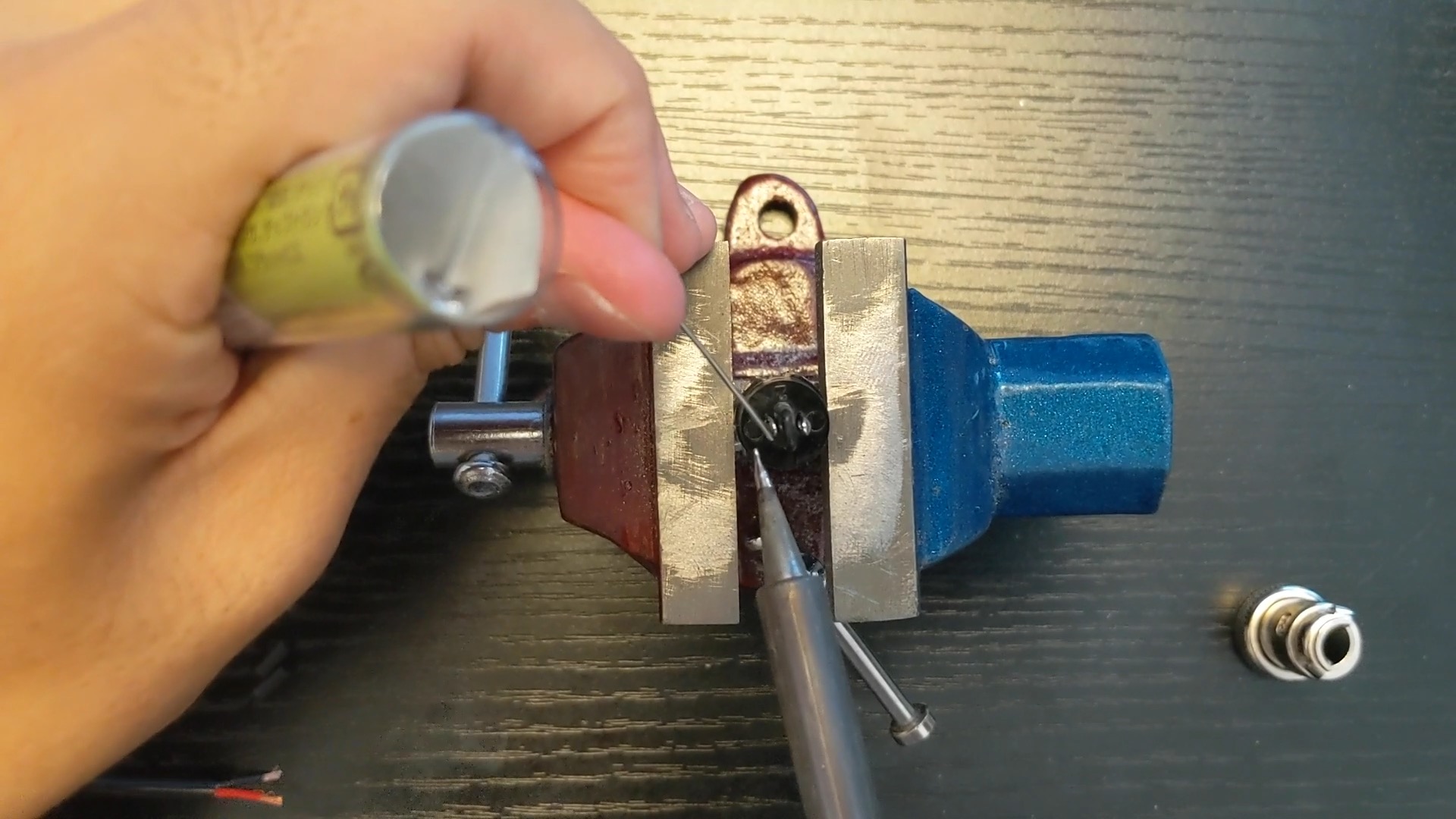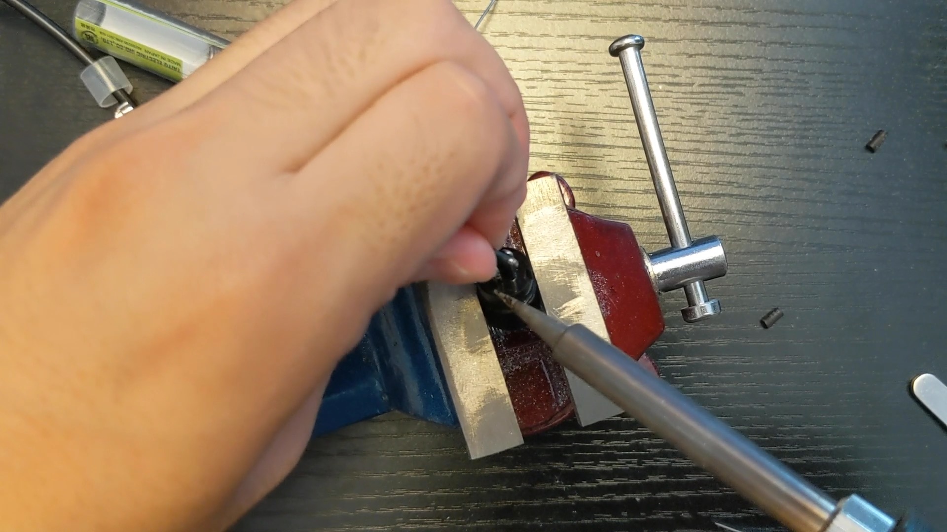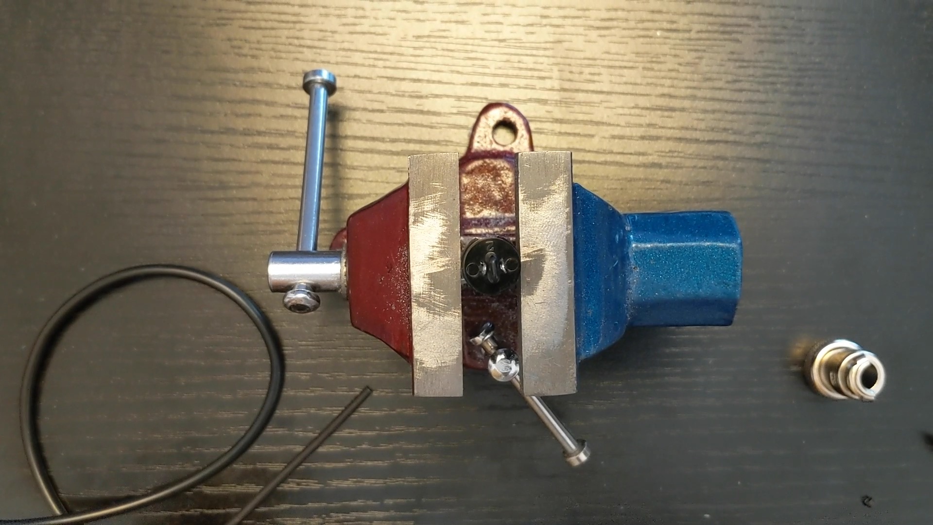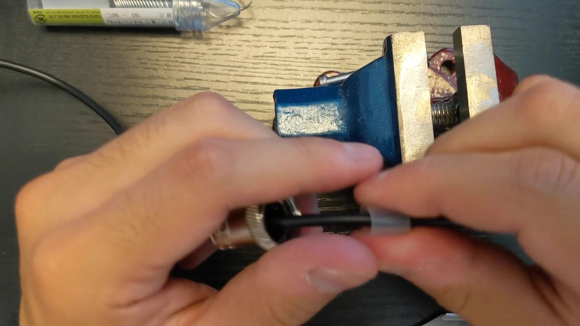 卓上バイスに端子部分を挟みます。