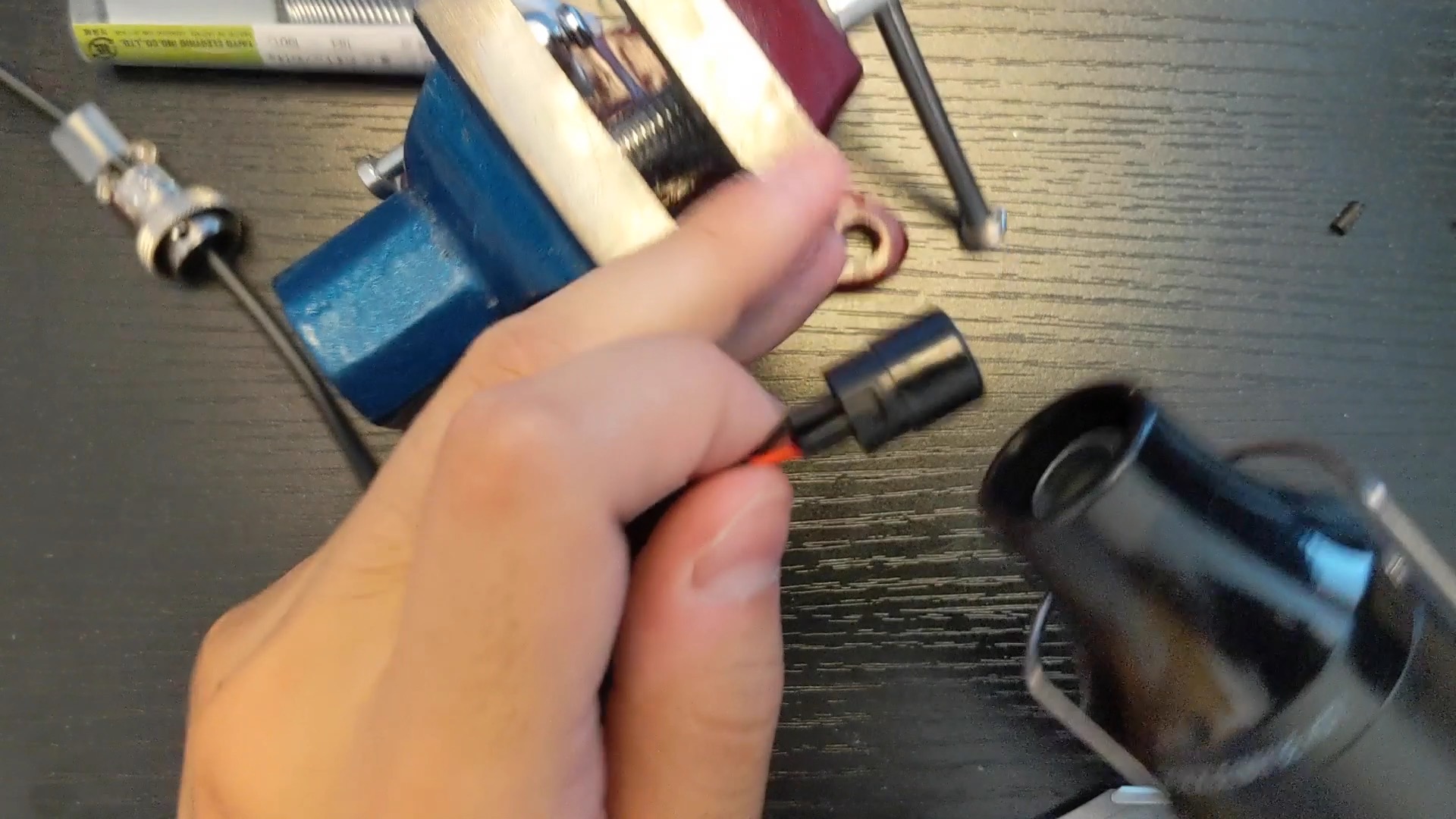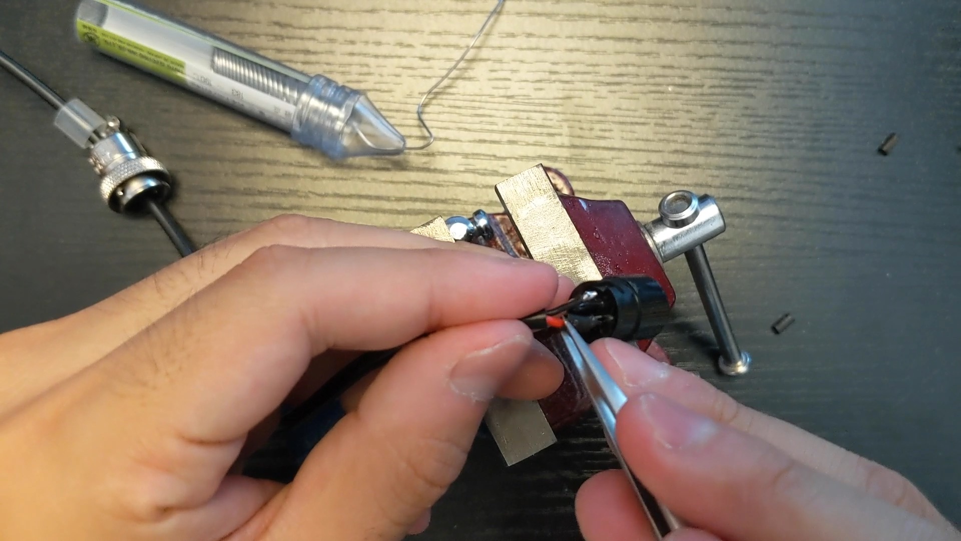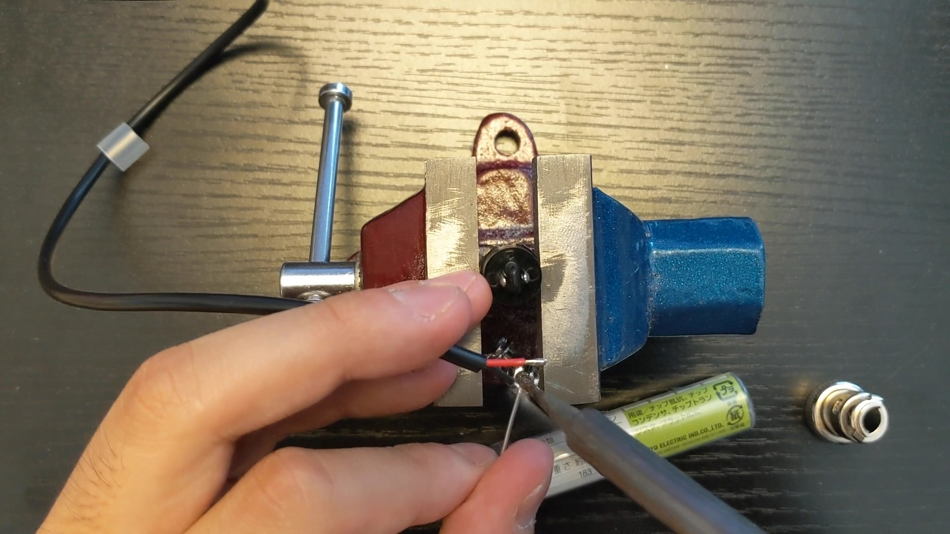 卓上バイスを使うと、はんだ付けの際に端子がズレないので、失敗がなくなります。