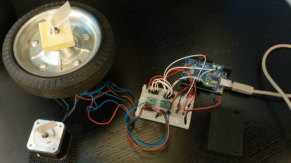 ステッピングモーター①の電源は、USBケーブルを通ってパソコンから給電。