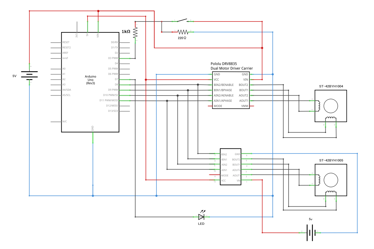 DRV8835の出力から2方向に分岐させてしまうと、本来の約半分の電流でステッピングモーターを制御をしようとしてしまいます。