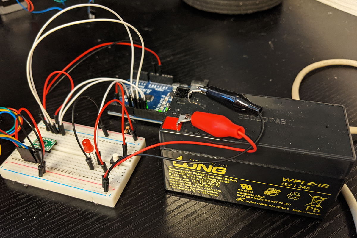 スイッチを押している間、LEDが点灯し、モーターが回転し続けます。