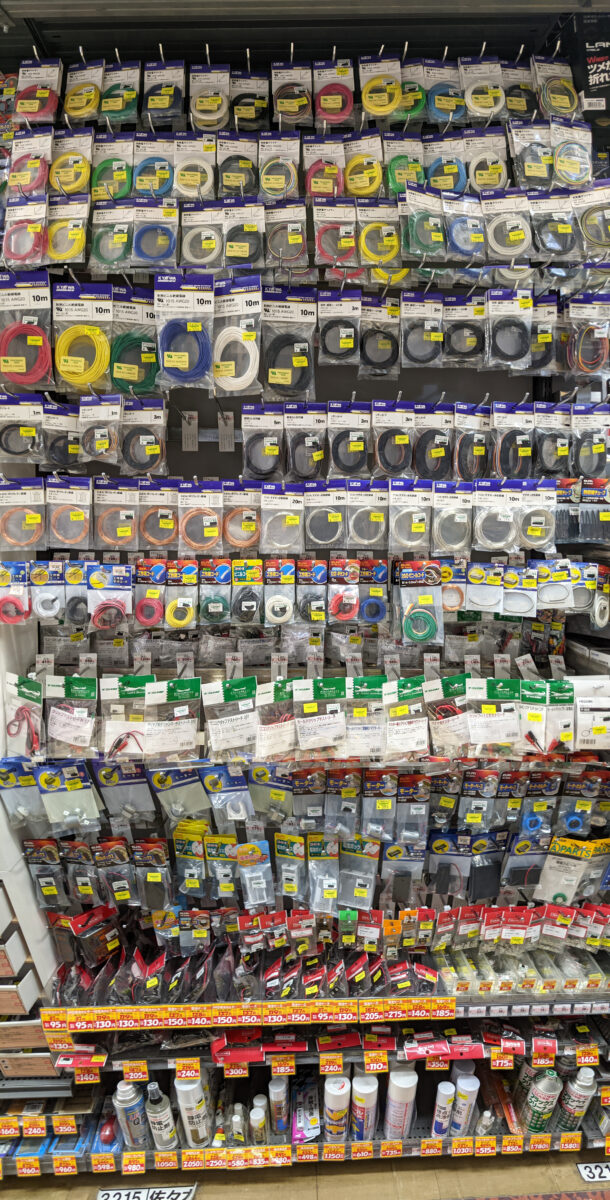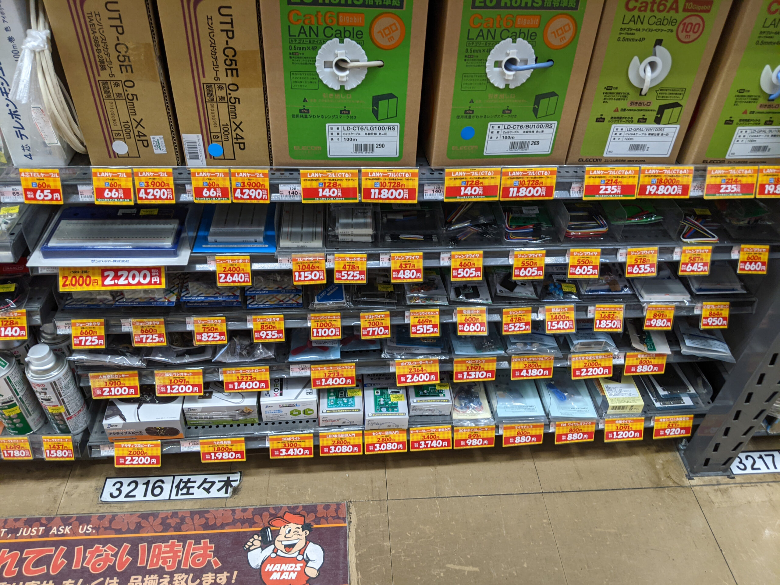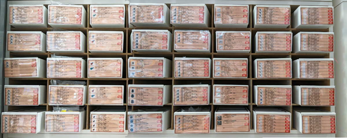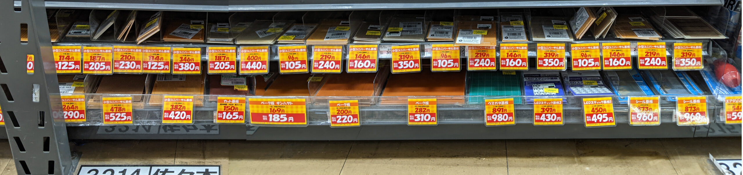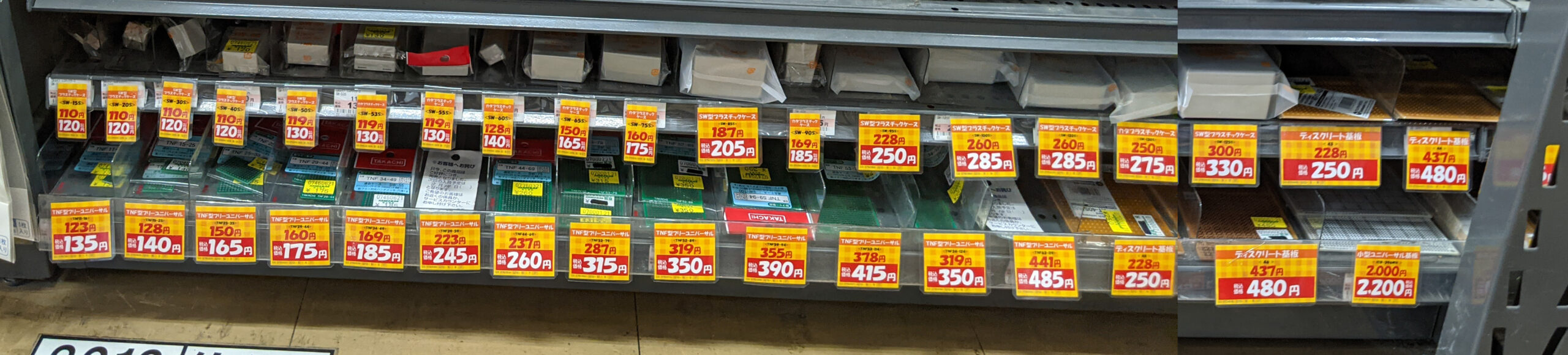 ハンズマン(宮崎市新名爪店)で販売されている電子部品棚の写真を撮ってきました。