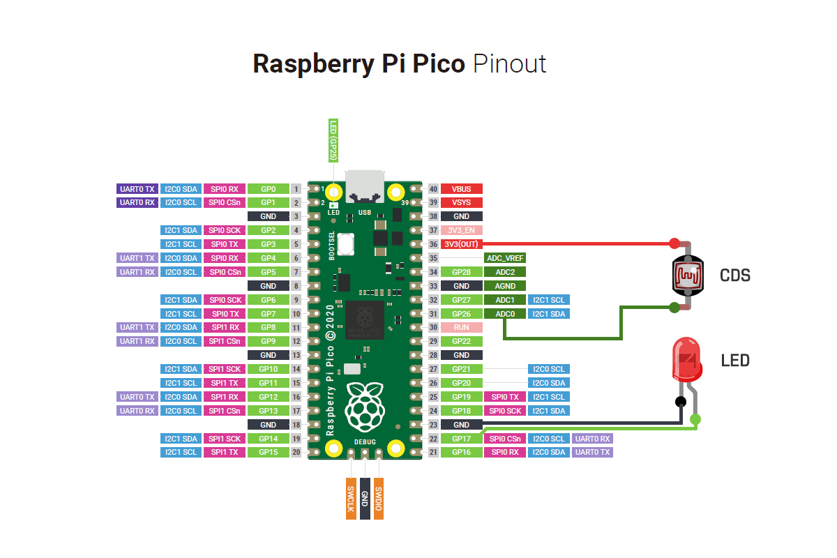 【ラズパイPico】CDS光センサーでAD変換(アナログ→デジタル変換)