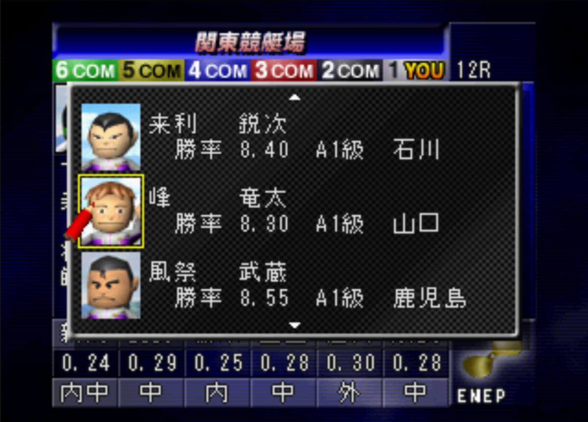そこで今回は、初代プレイステーションのゲームソフト「競艇WARS マクル6」を使って、名前を実名にリネーム・能力のパラメーターを変更する方法について紹介します。