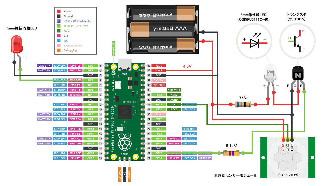 R1:赤外線LEDを破損させないための抵抗値