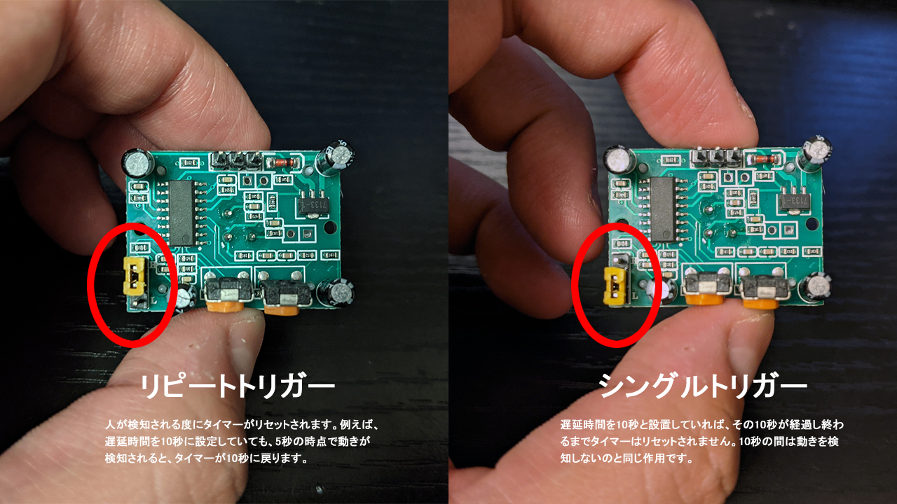 また、ジャンパーの位置(Jumper Set)を変えることで、検知モードを変更することが可能です。