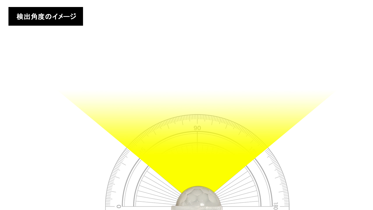 検出角度は100°の放射状となっています(調整不可)