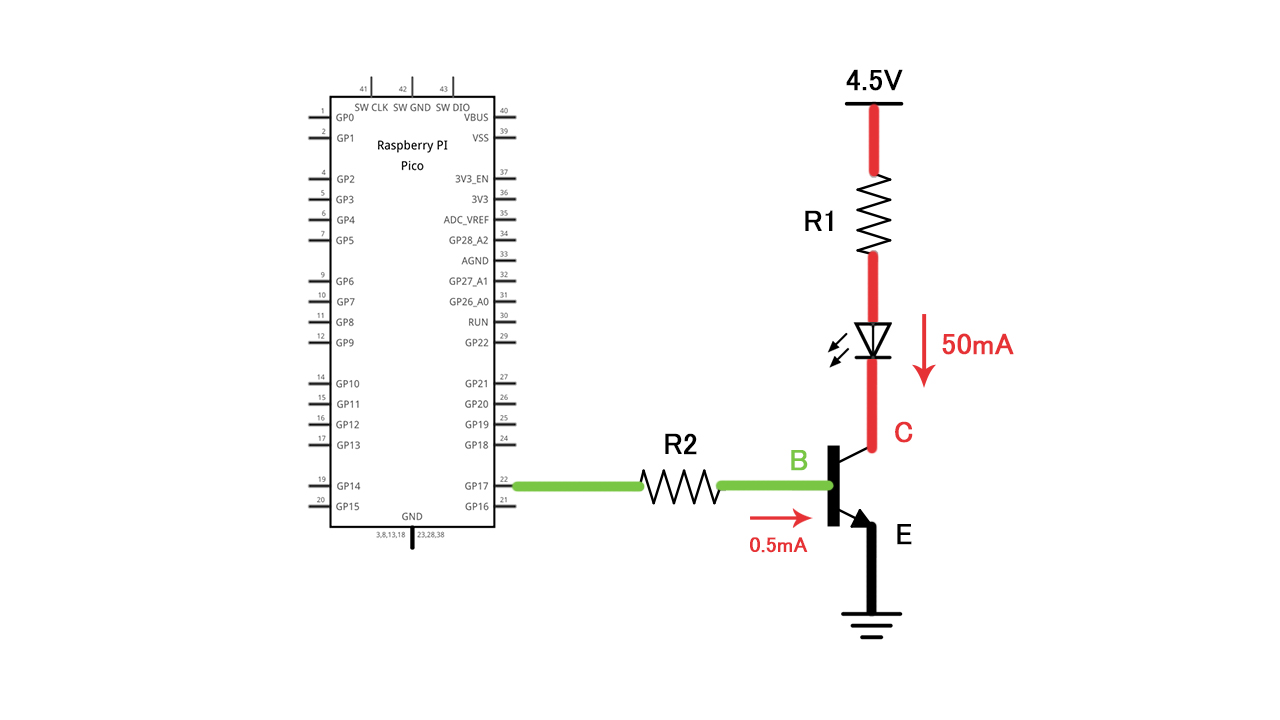 - ベース電流:0.0005A(0.5mA)