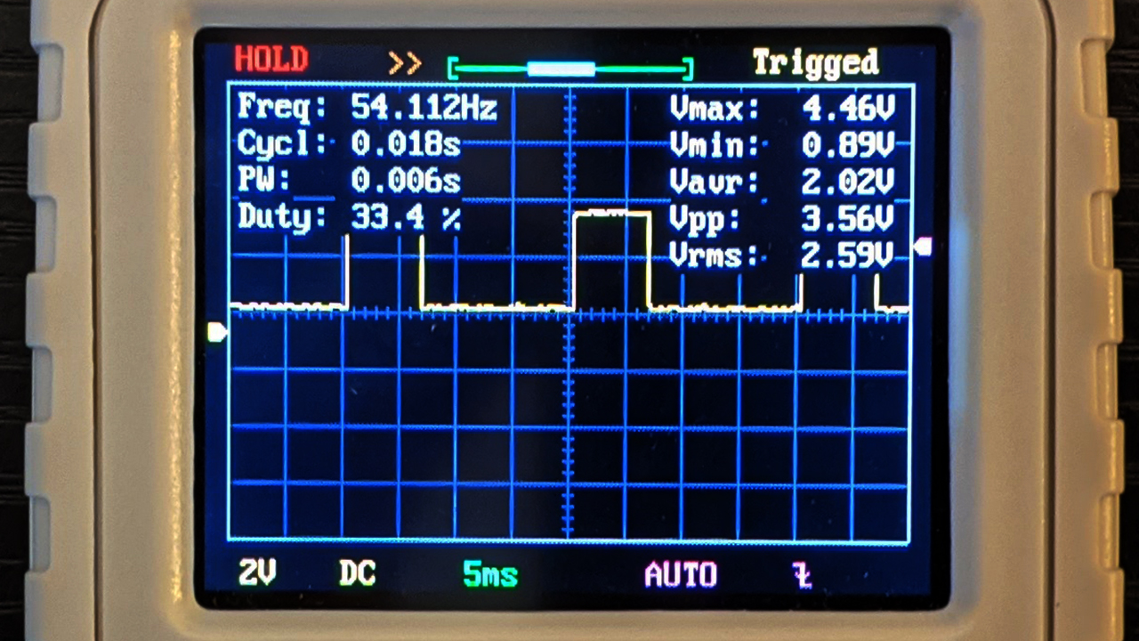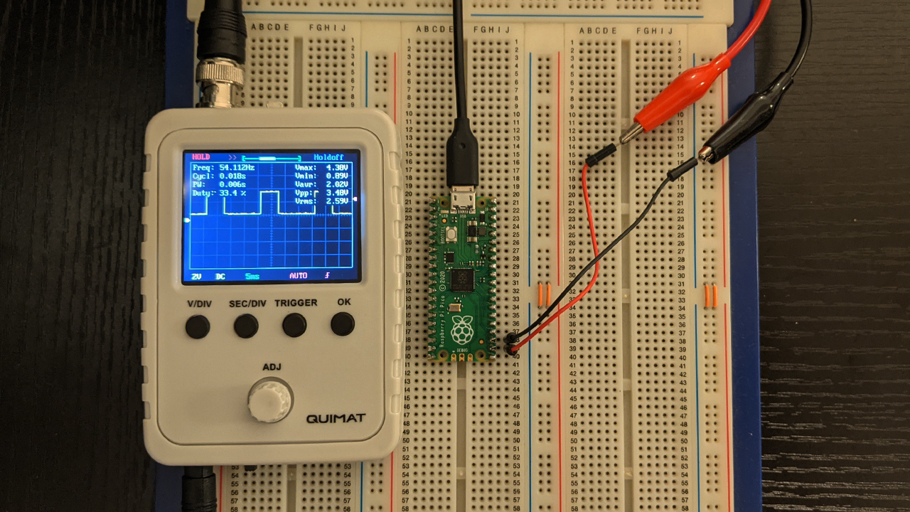 実際に、ラズパイPicoから出力されるPWM信号を計測してみます。