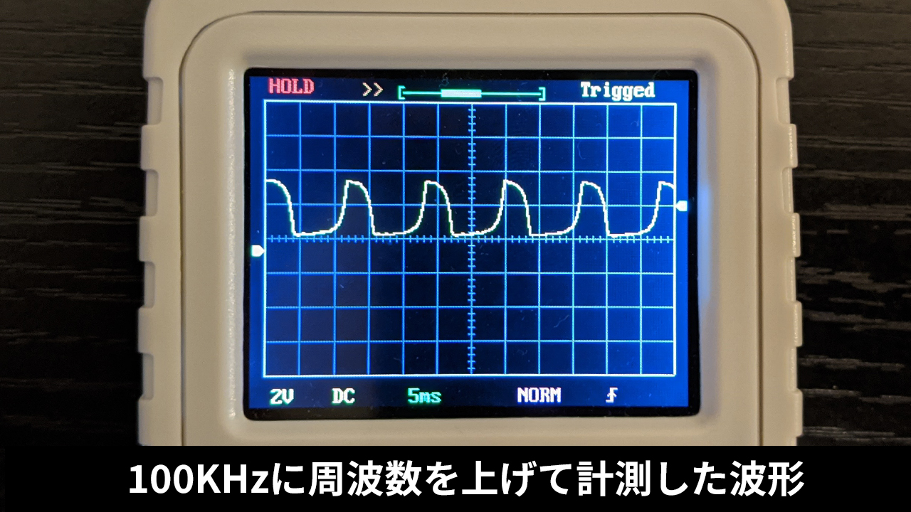 しかし、キレイにパルスを表示できるのは、だいたい10KHzくらいまででしょうか。