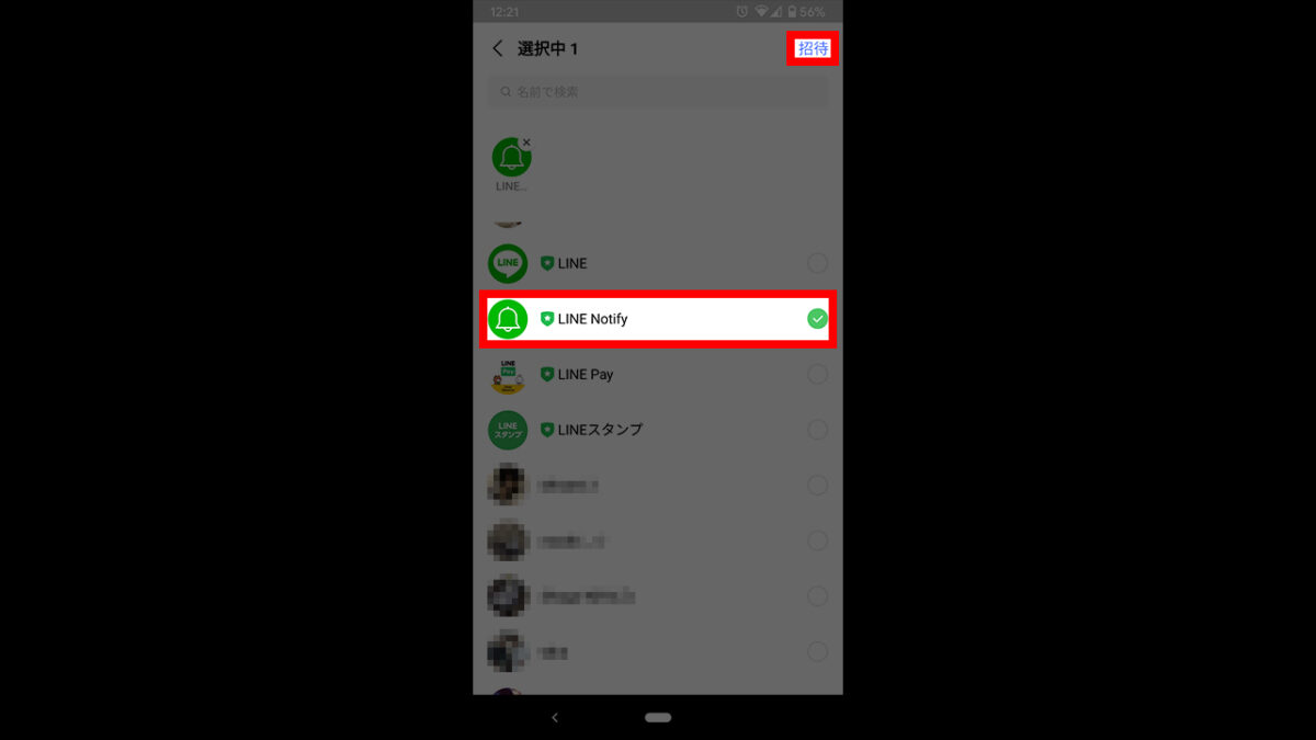 最後に、グループの中にLINE Notifyを招待しておきます。
