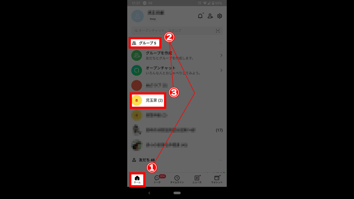 [ホーム]-[グループ]-[グループ名]と進む↓