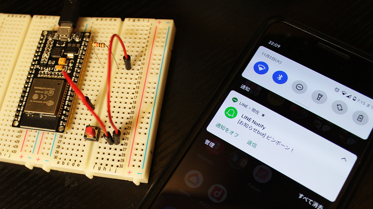 今回はESP32-DevKitCを使って、LINE通知を行うサンプルコードを紹介します。