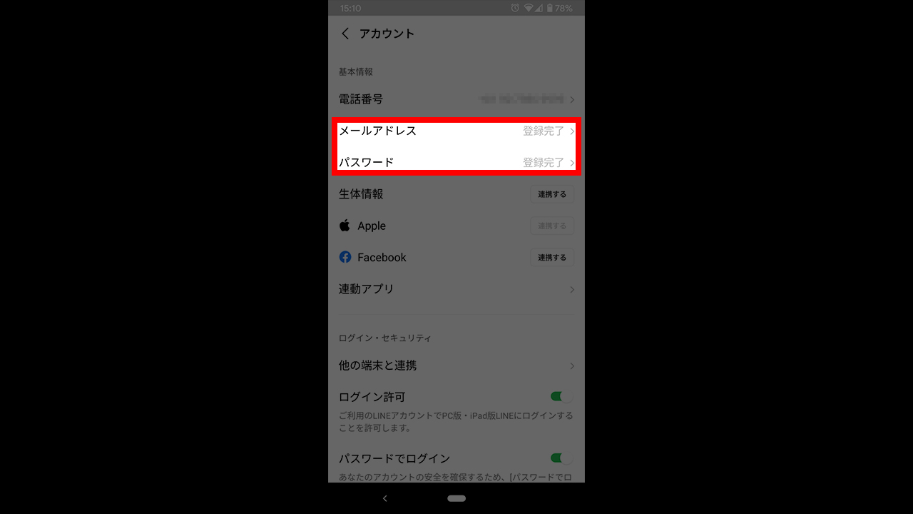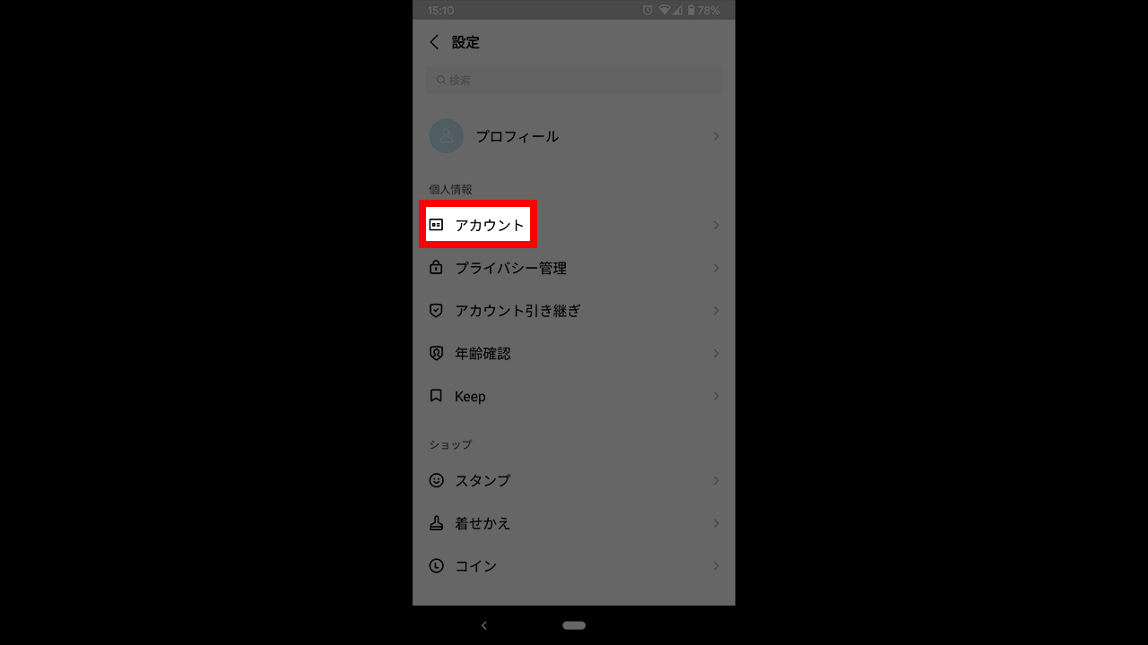 スマホでLINEを起動し、アカウント設定の内容を確認してください。