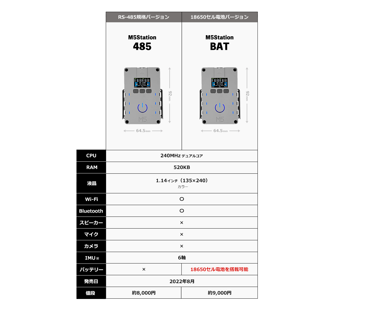 なおM5Stackには、「6軸のIMU」を搭載したモデルと「9軸のIMU」を搭載したモデルが存在しています。