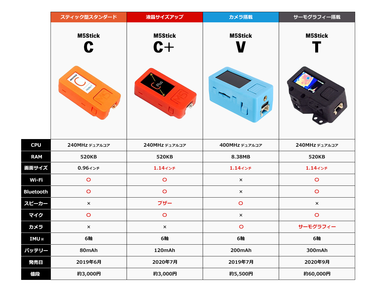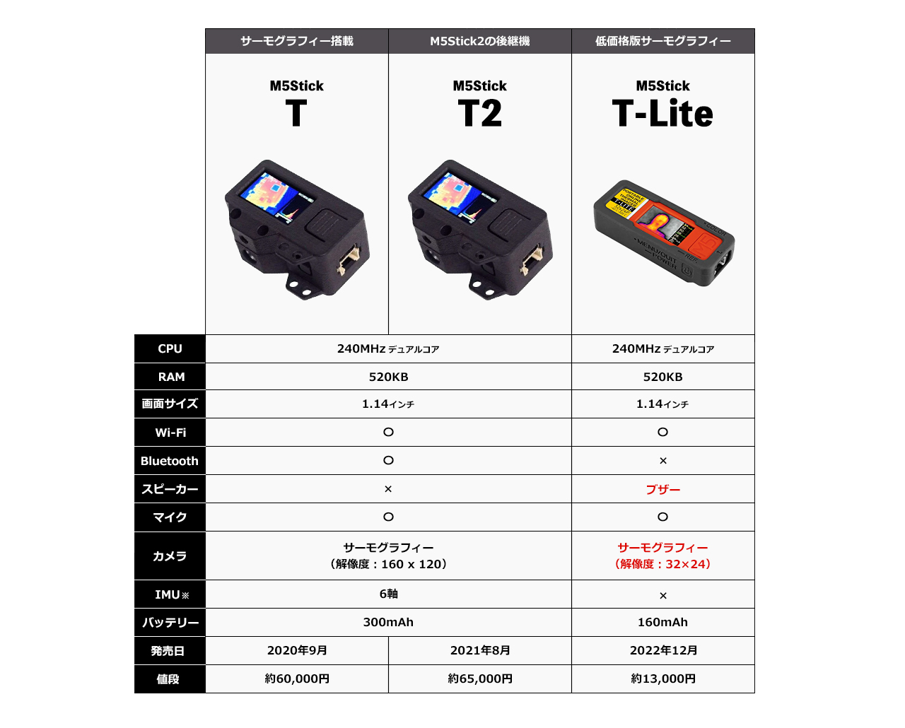 M5Stack系・赤外線サーマルカメラ(Tシリーズ)の違い