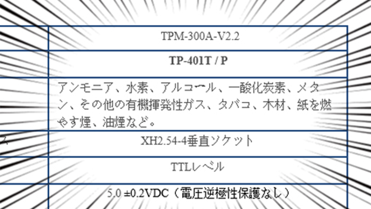 センサーを搭載した基板に書いてある型番(TPM-300A-V2.2)を検索してみると、中国語のサイトがヒット。