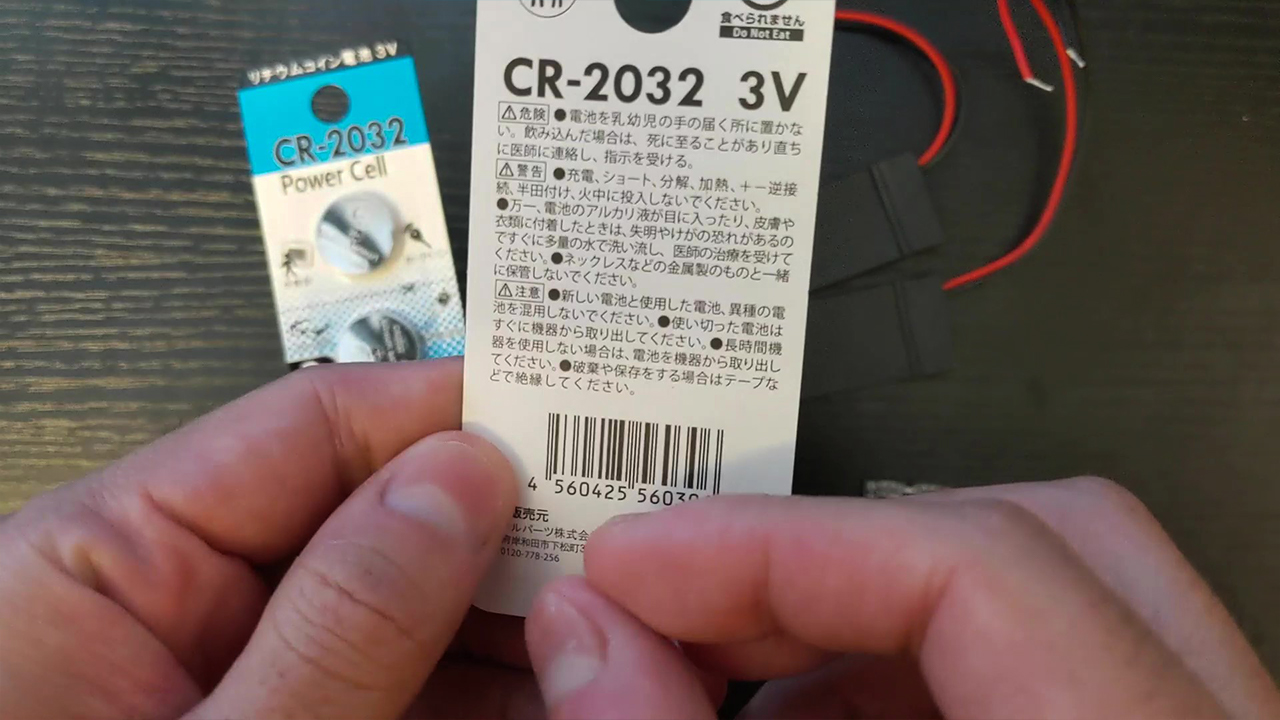 今回使用するコイン電池『CR2032』の電圧は、3V。