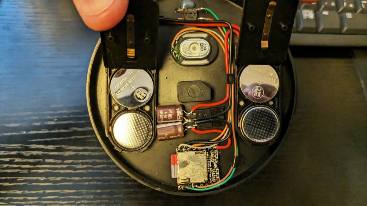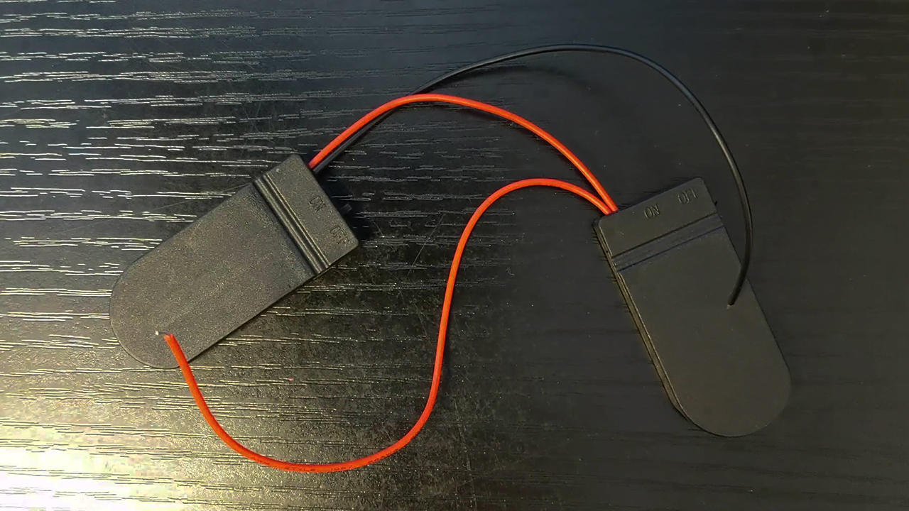 ※CR2032が2個入る6V仕様の電池ケースを2つ繋げて、12V仕様に改造しました(電池ケース裏面のネジを外すと端子があります)