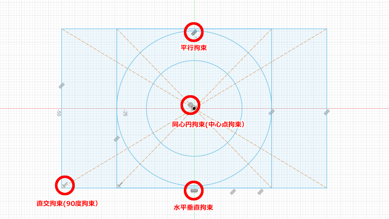 スケッチの中心にカーソルを置かないと表示されない拘束マークもあるので、見落とさないよう注意してください。
