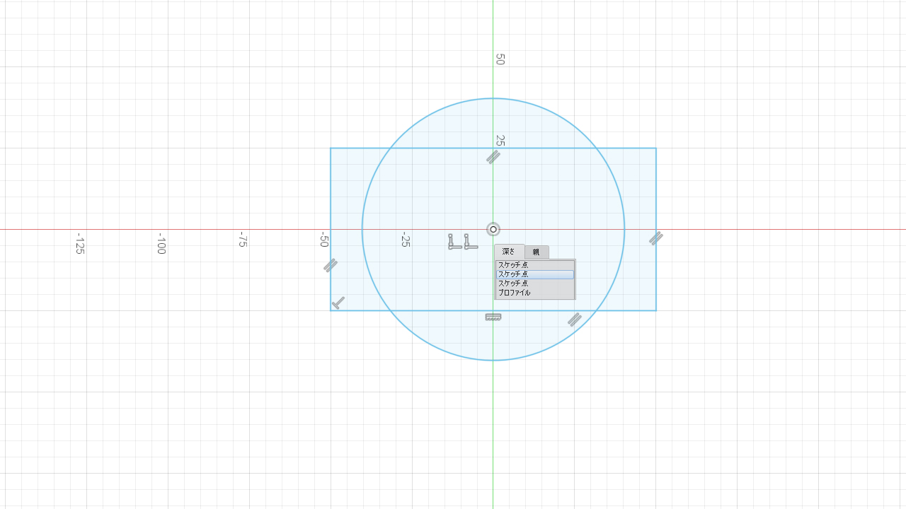 円とか四角のような単純な形状ではなく、円と四角を組み合わせた複雑な形状を作りたいときは、別々にスケッチを書いてはいけません。