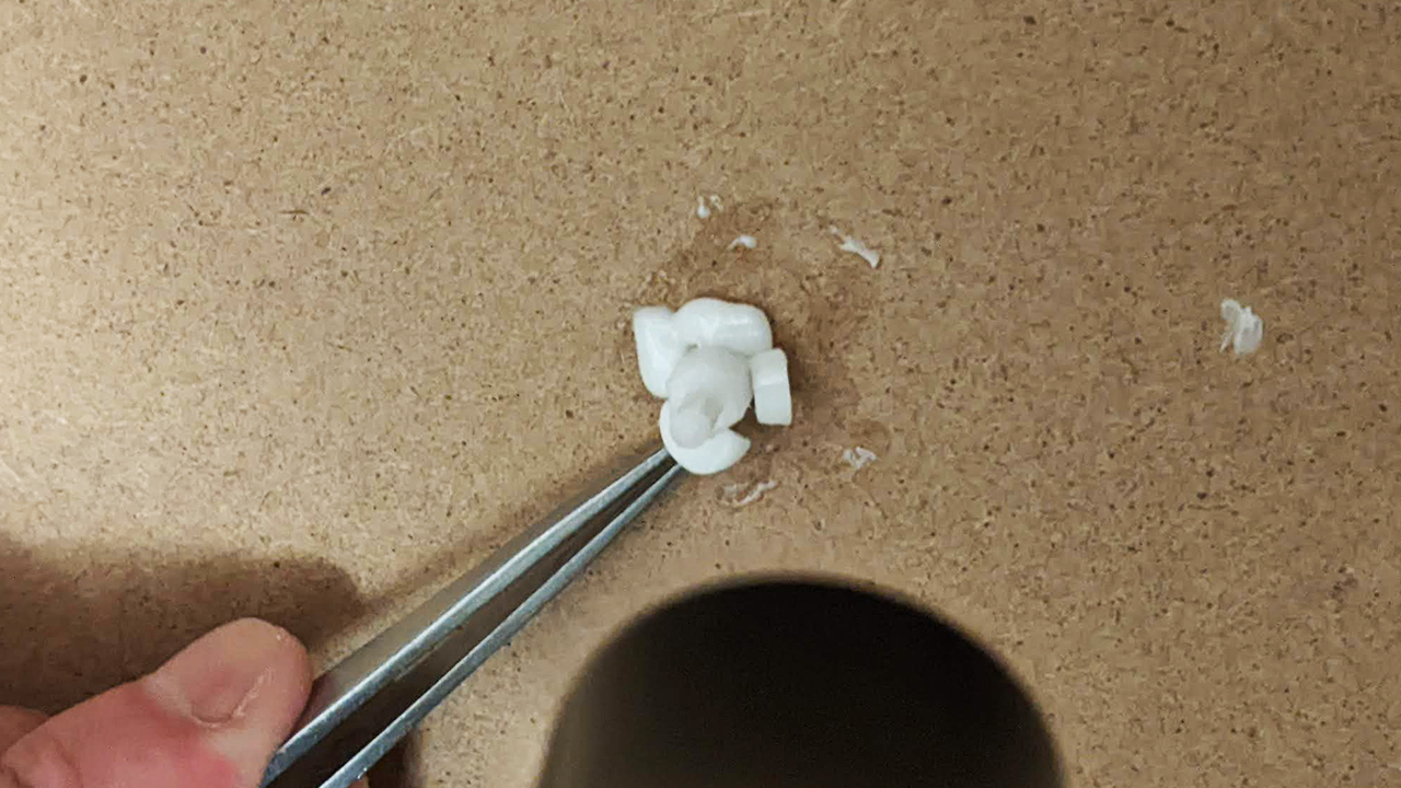 形のバランスが崩れたときは、ボンドが温かいうちに、ピンセットで直接ボンドに触れて形を整えて下さい。