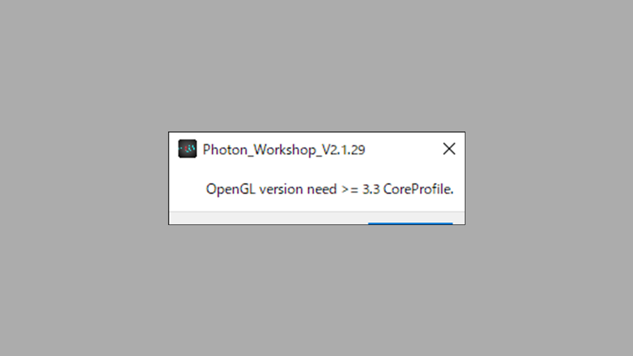 インストール完了後、アイコンをダブルクリックしても「OpenGL version need >= 3.3 CoreProfile.」というエラーが表示され、ソフトを起動できない場合があります。