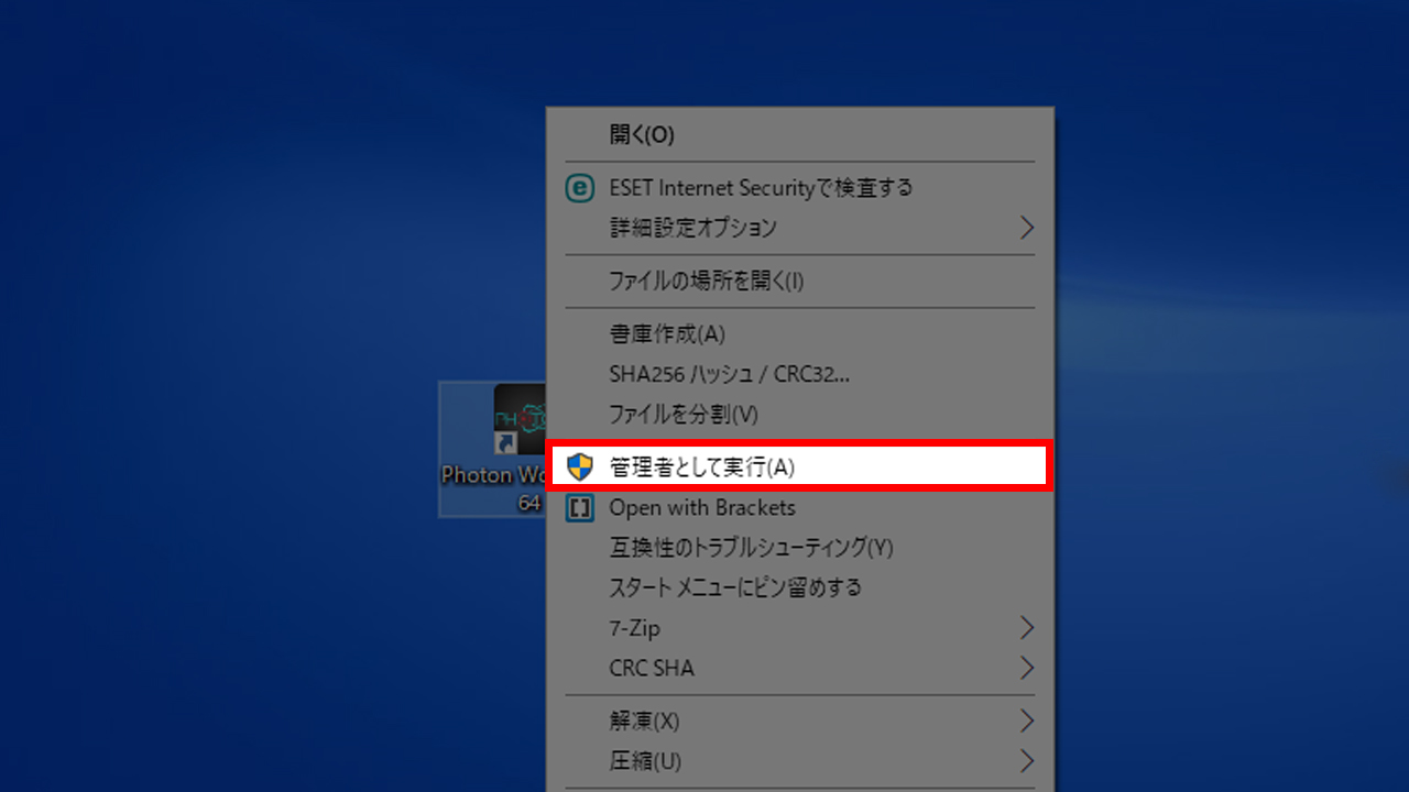 この場合、アイコンを右クリックして「管理者として実行」を選択してください。