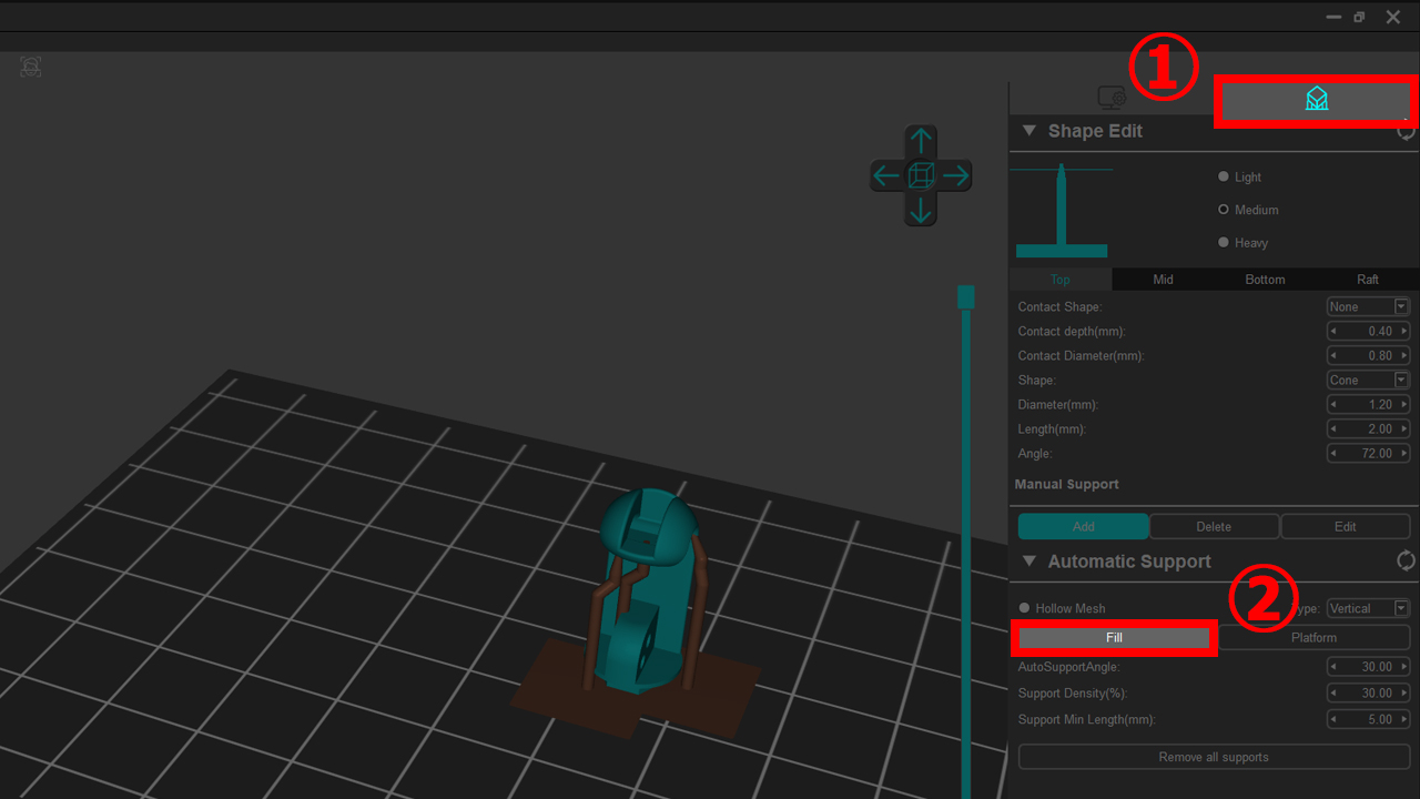 「Fill(満たす)」ボタンを押すと、自動でサポートが取り付けられます。