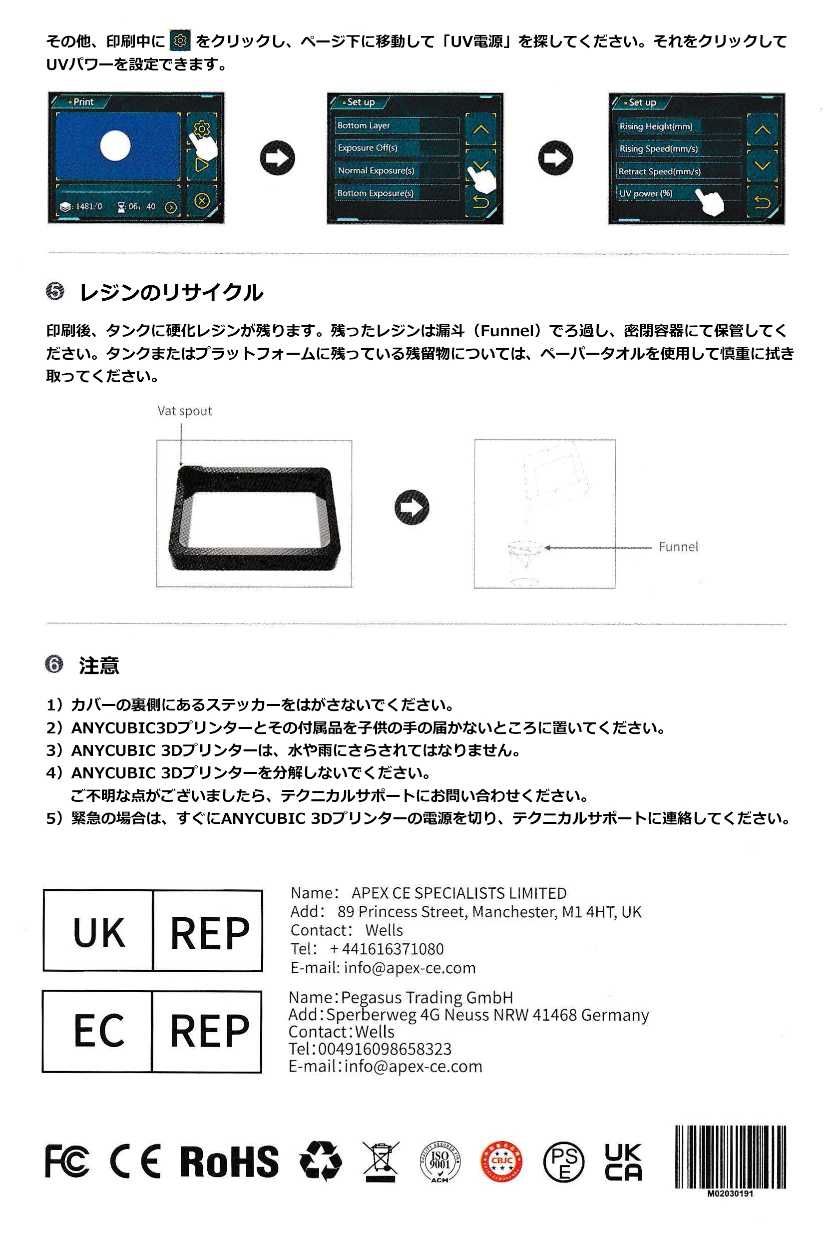 Anycubic Photon Mono 4Kに付属していたセットアップ説明書が中国語版と英語版しかなかったので、日本語訳しました。