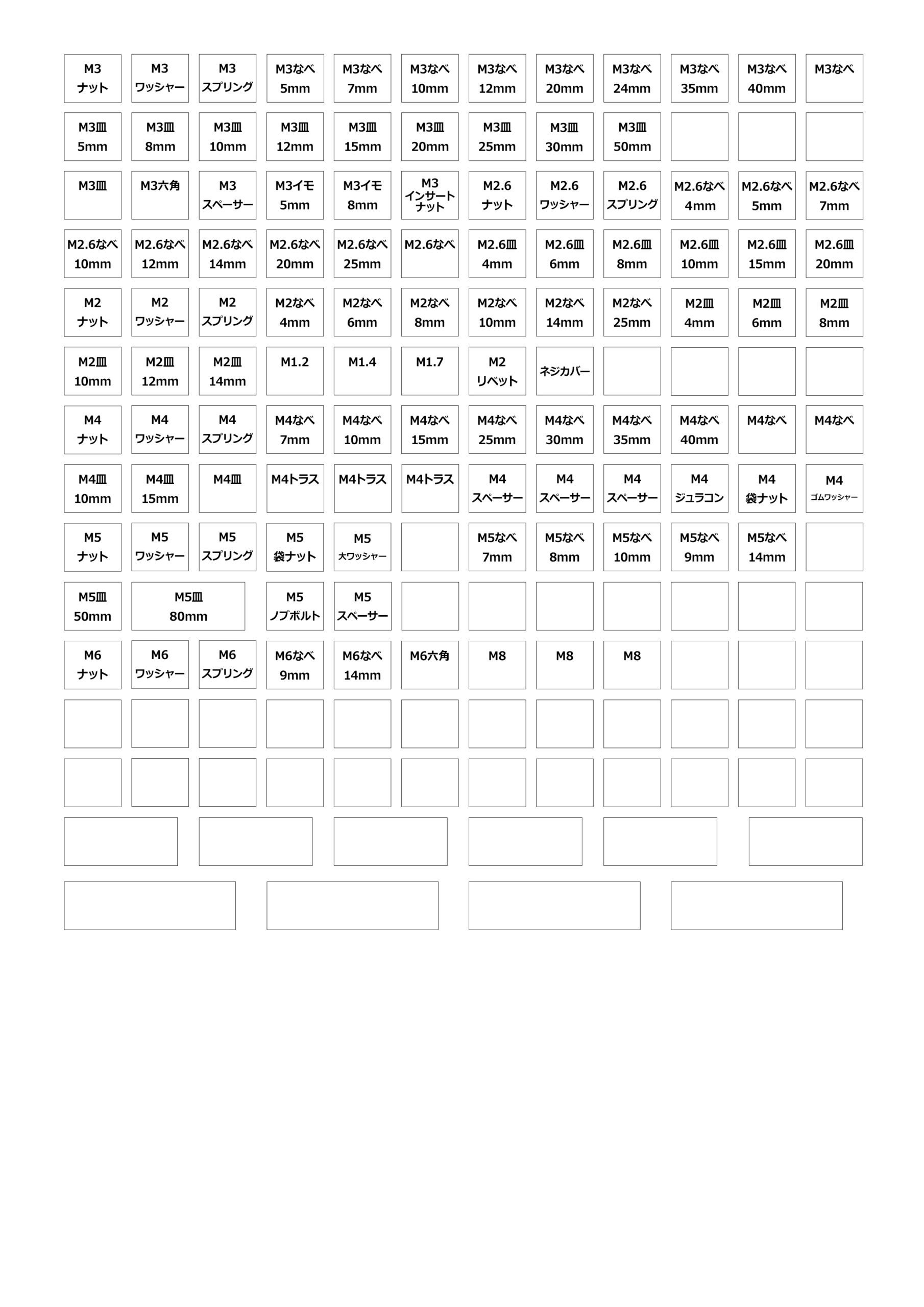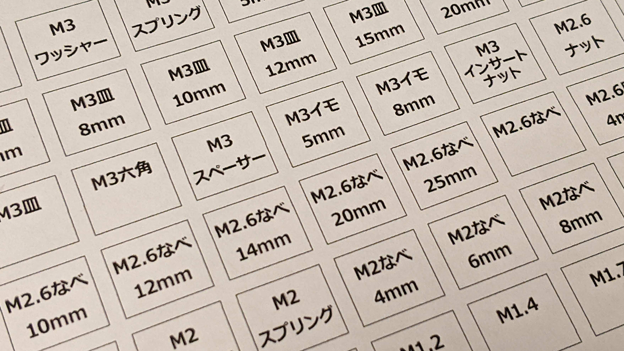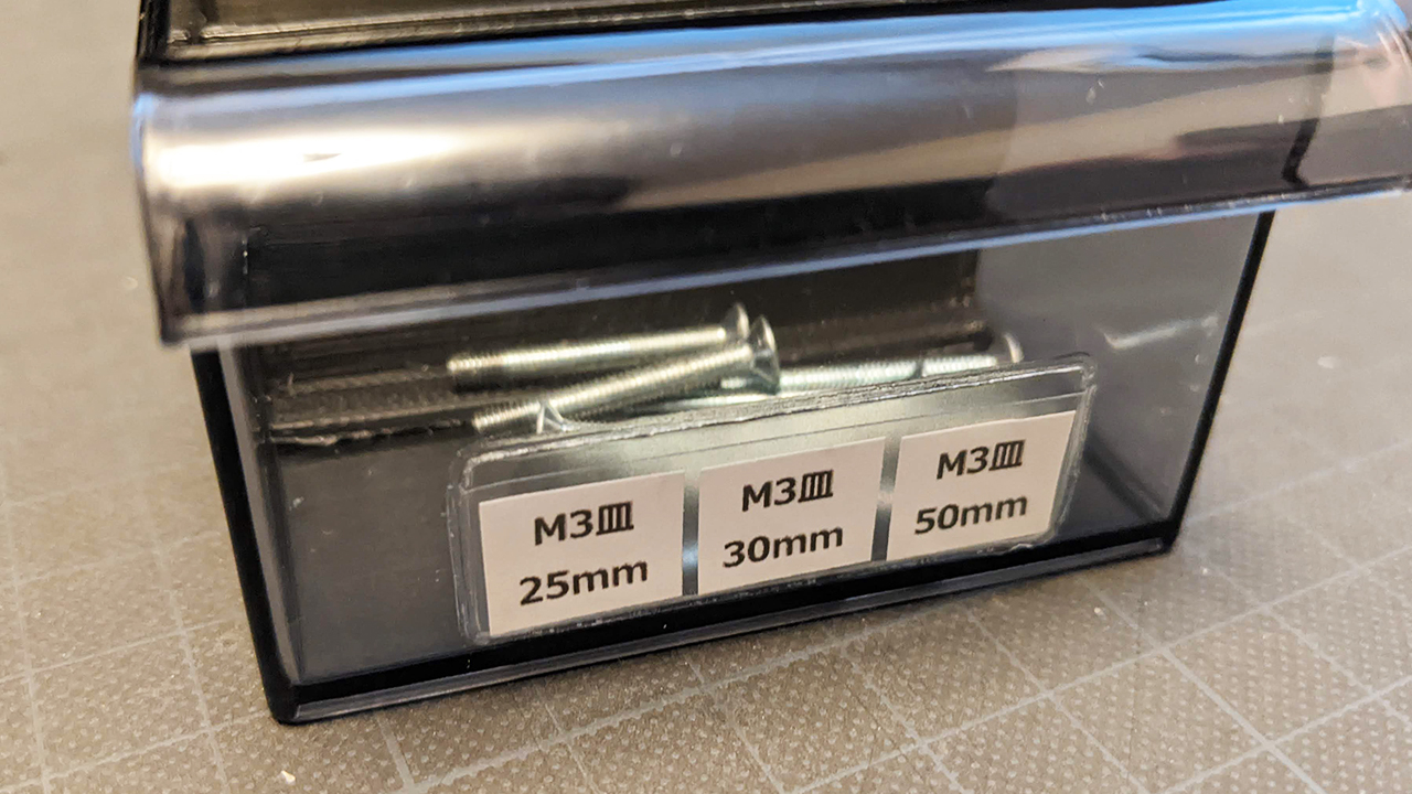 後で追加でネジを購入した時にも、割り込み・整理しやすいように3つに区切っています。