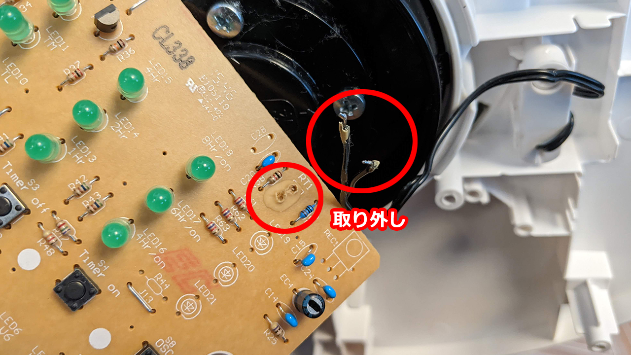 そこで、リモコン受信センサーを基板から取り外すことに。