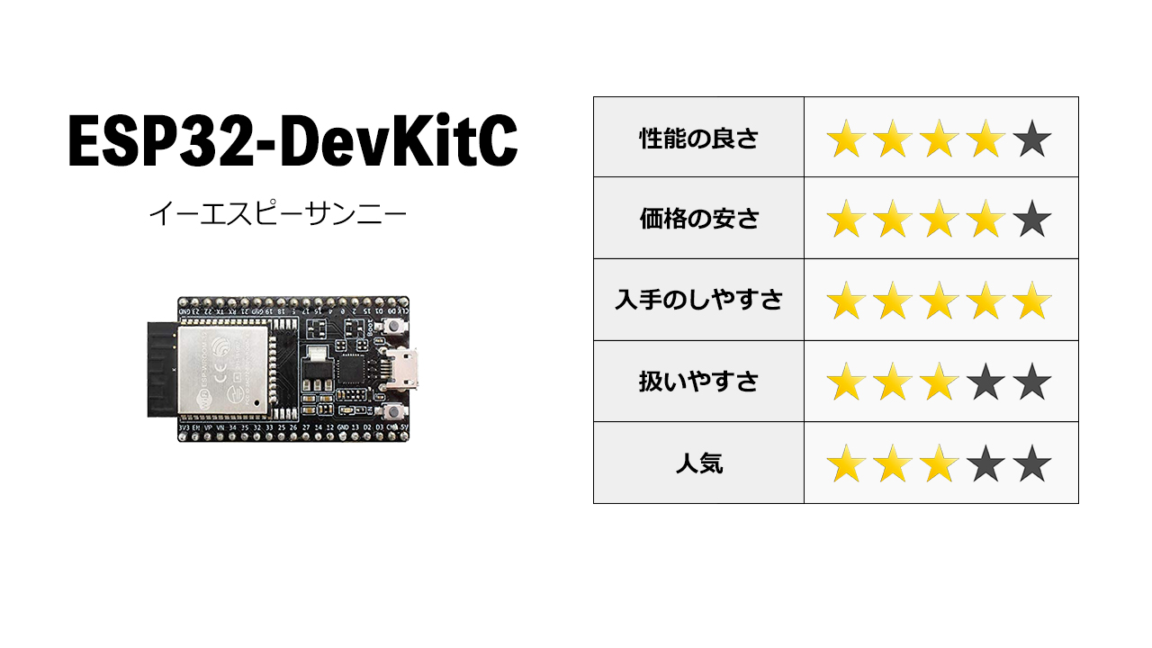 ESP32-DevKitCは、汎用性が非常に高いマイコンです。
