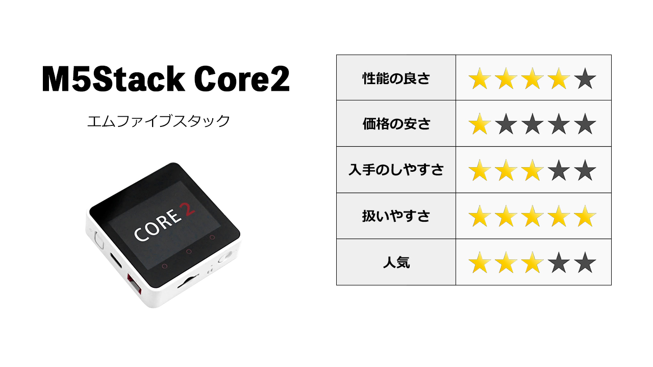 M5Stack Core2は、M5Stackシリーズの中で高性能の上位モデルとなりますが、通常モデルと比べても、それほど値段は変わりません。
