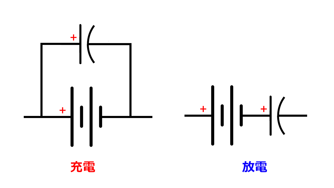 乾電池とモーターの間にスーパーキャパシタが直列接続される回路に変わります。
