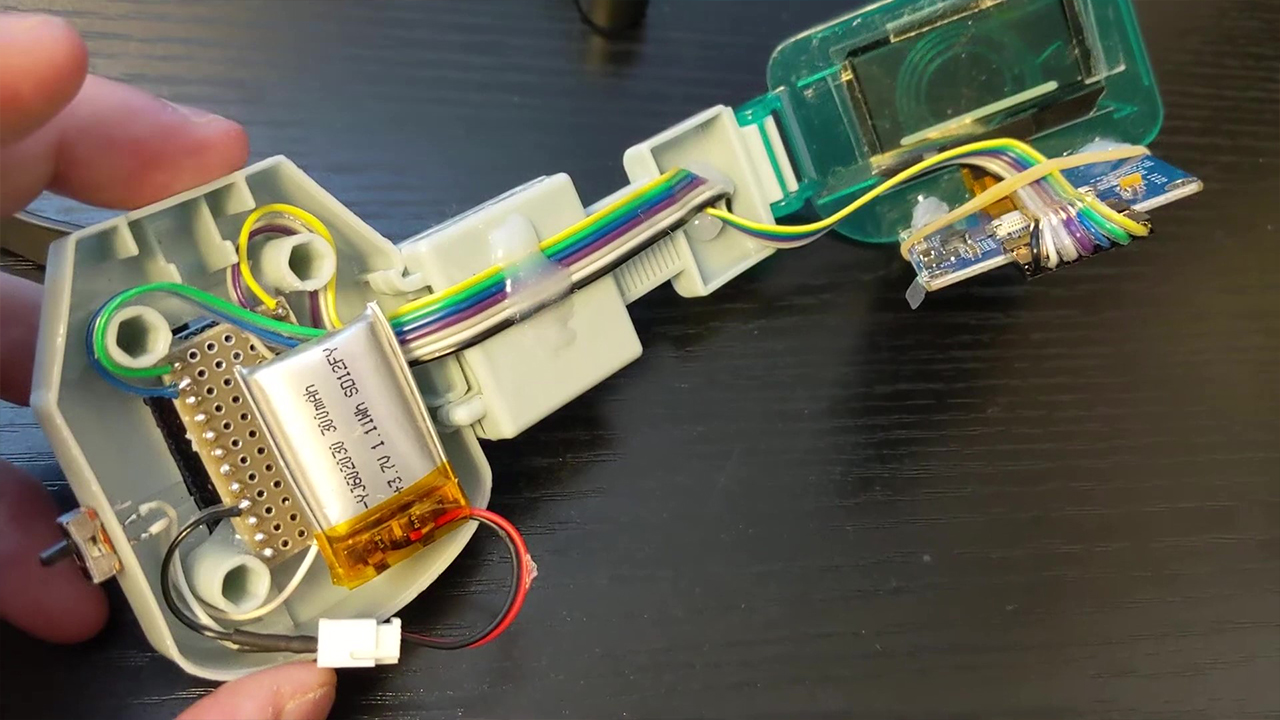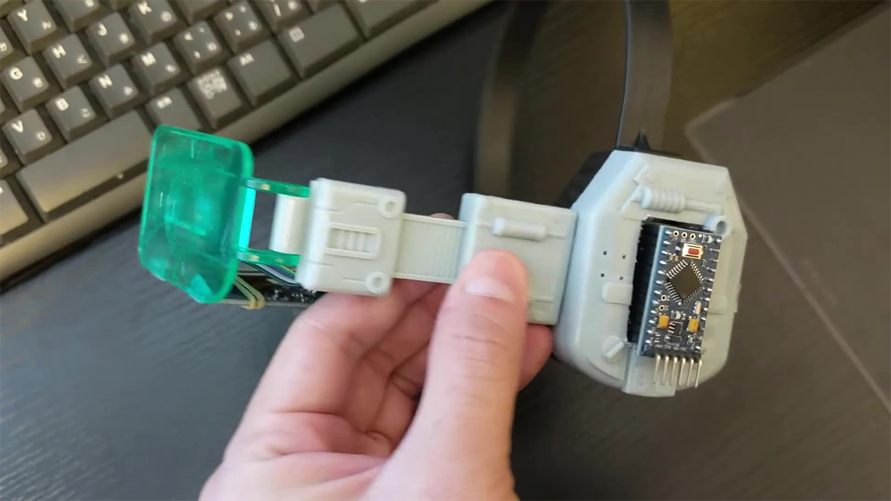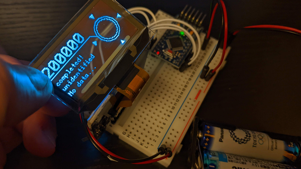 今回はこのスカウターを透明ディスプレイで再現してみました。