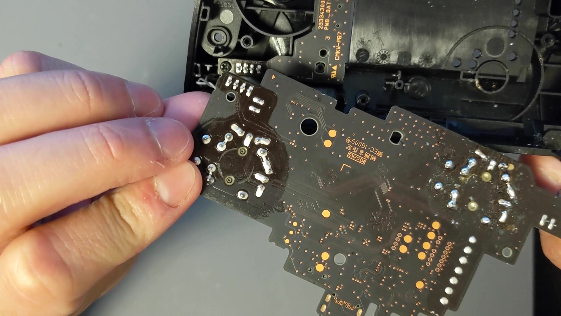 まだ他にも基板に繋がっているケーブルがあるので、基板だけをコントローラー本体から完全に切り離すことはできませんが、一応これで修理できる状態にはなりました。