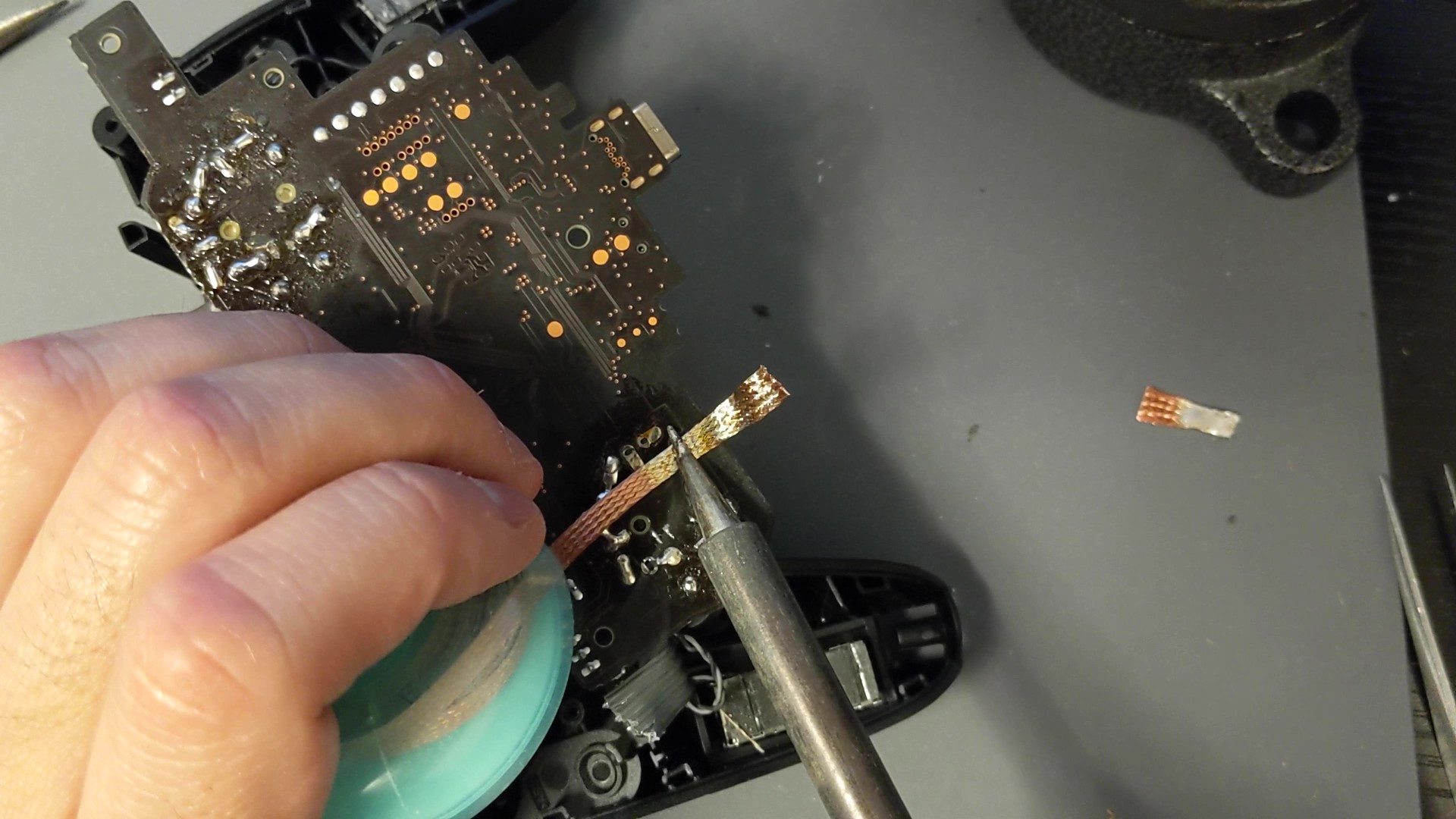 無事にジョイスティックを取り外すことができたら、基板の穴を塞いでいるハンダをはんだ吸い取り線を使って、全て吸い取っていきます。