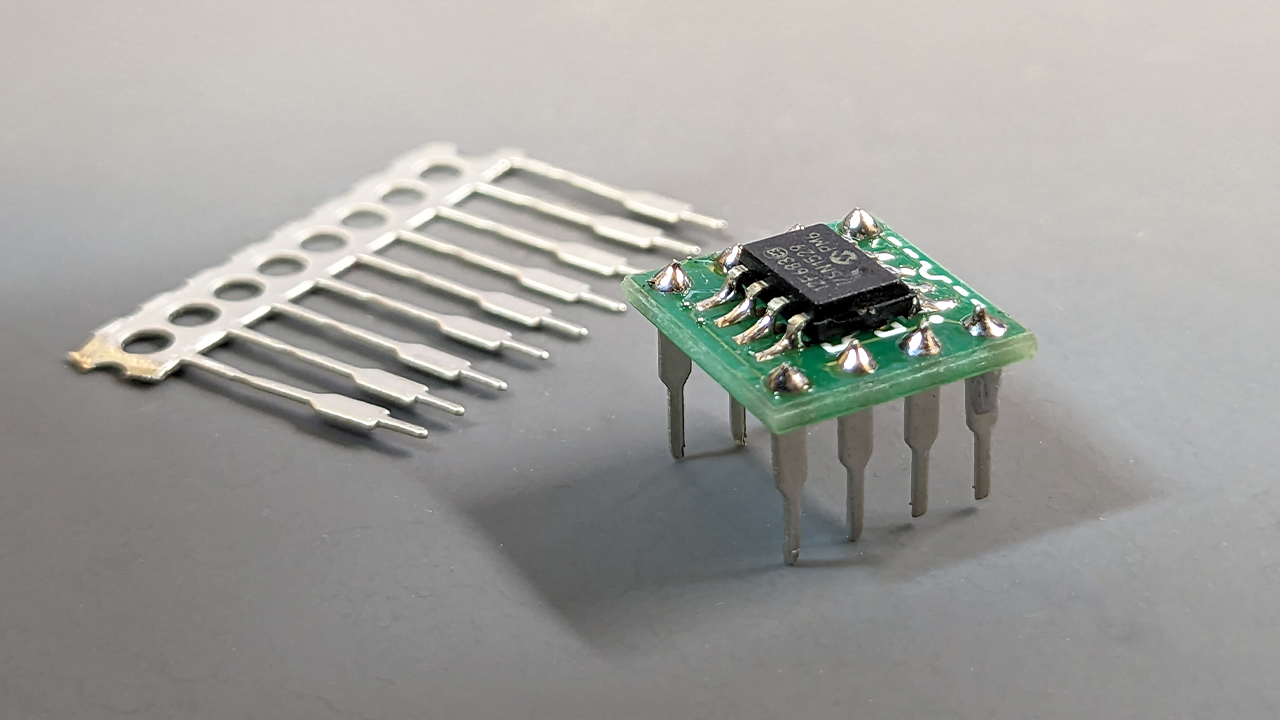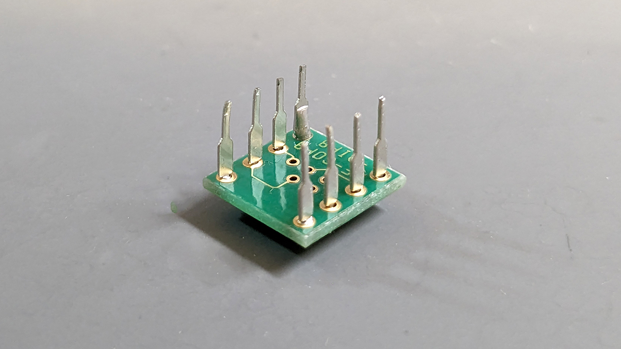 8ピンのIC変換基板に取り付けるのであれば、4ピン並んだリードフレームを2個用意することになります。