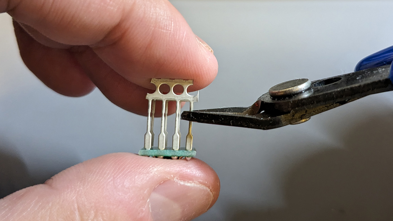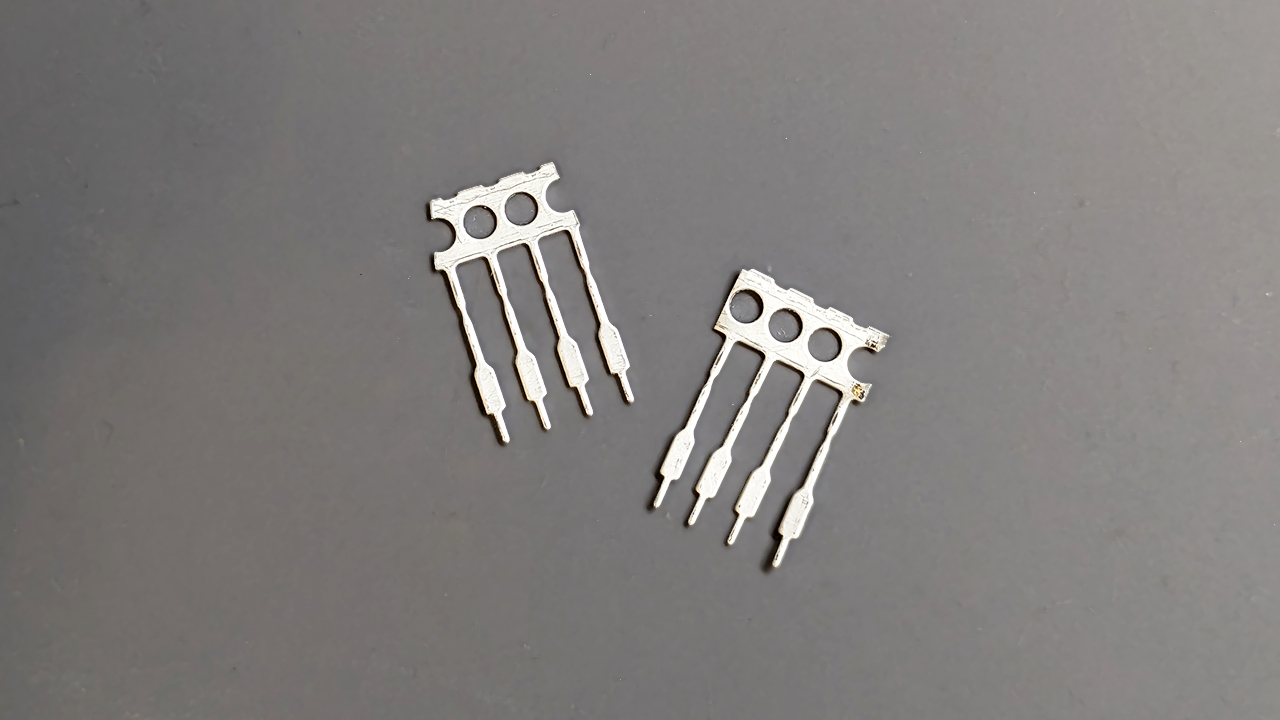 リードフレームは細いので、軽く力を加えるだけで、すぐに曲がってしまいます。