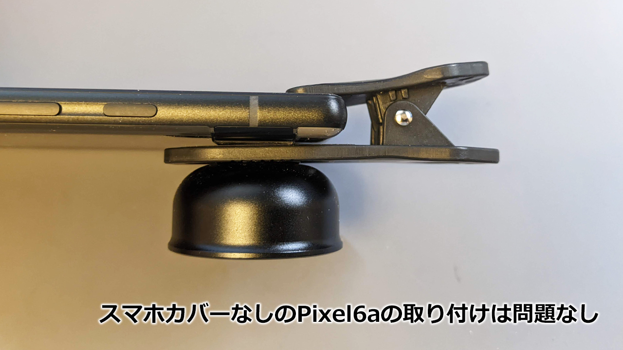 Google Pixel6aへの取り付けは、スマホカバーを使用していない状態であれば、挟むだけでOKです。