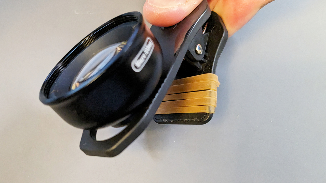 チップ部品をスマホで撮影できる後付けレンズ(Apexel HDマクロレンズ)